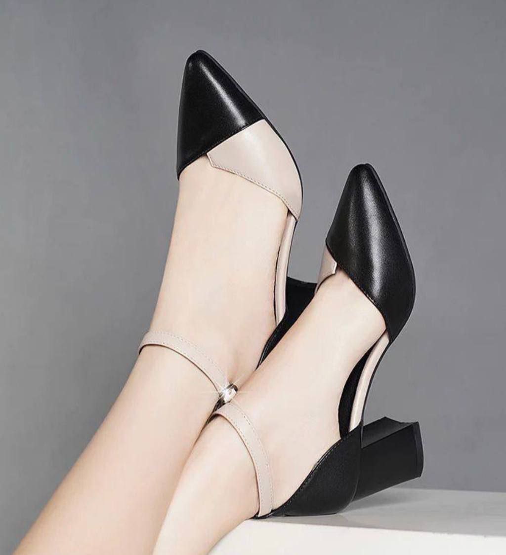کفش مجلسی زنانه و دخترانه دو رنگ زنانه و دخترانه شیک ، کفش پاشنه ۷ سانت دو رنگ شیک