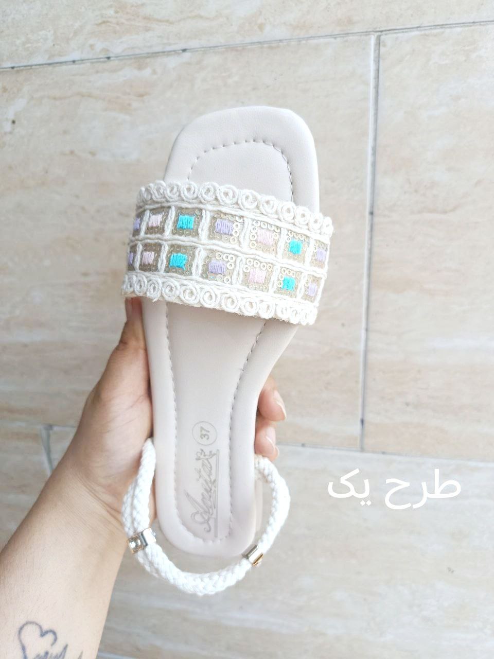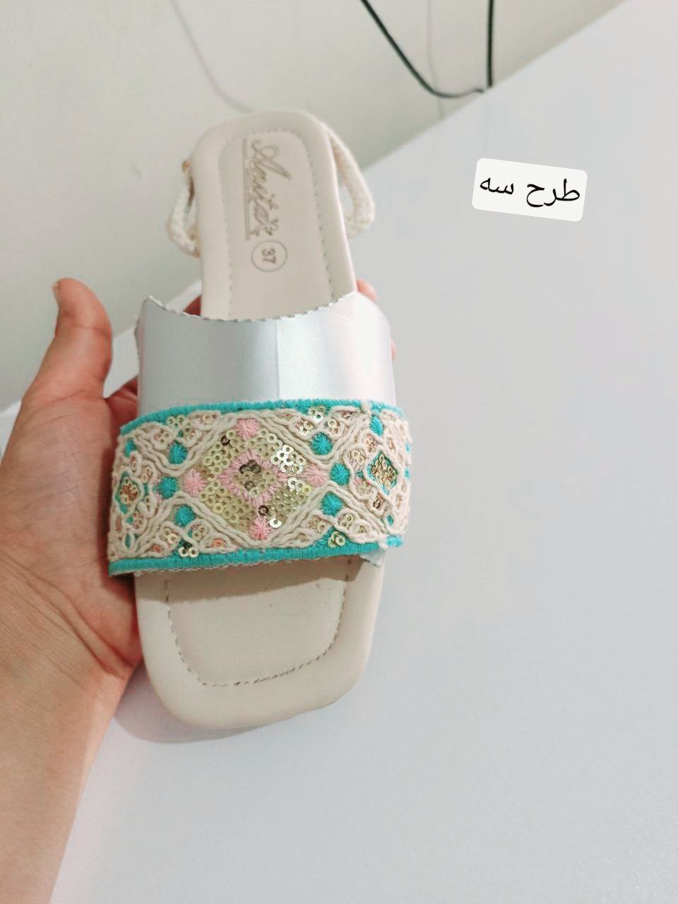 #صندل سنتی کد #05002پاشنه دو سانت سایز 37 الی 40 عمده : پیوی✅پاخوری شیکرنگ‌بندی : کرم طرح یک ، کرم طرح دو ، کرم طرح سه