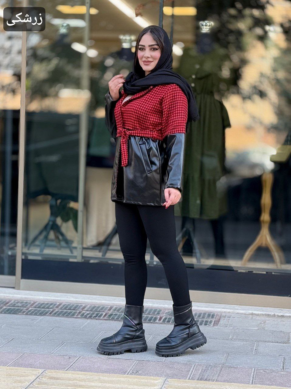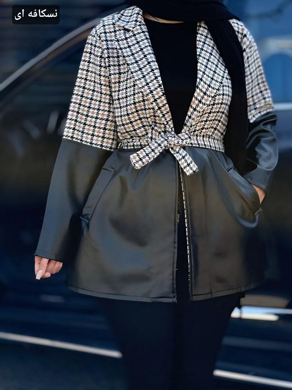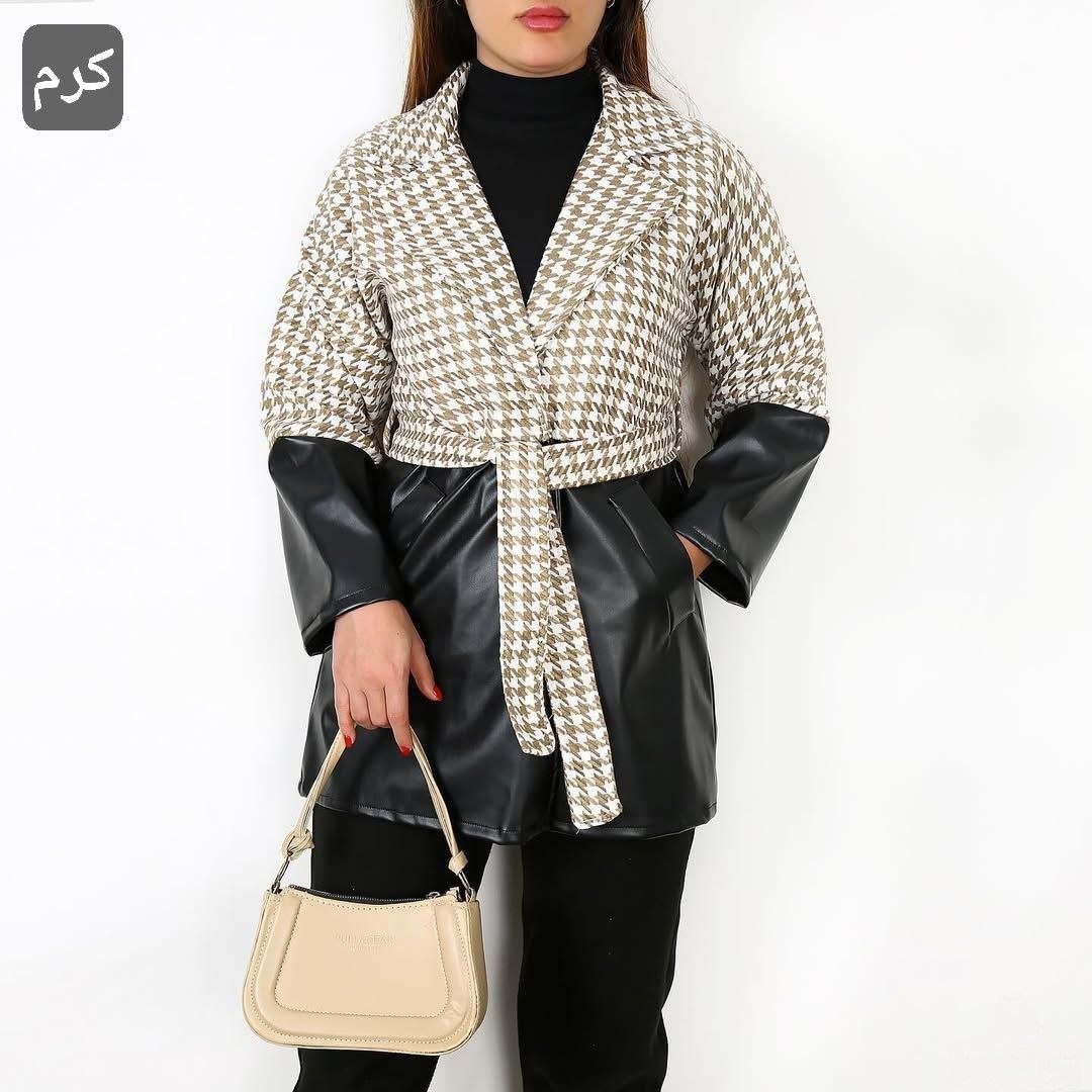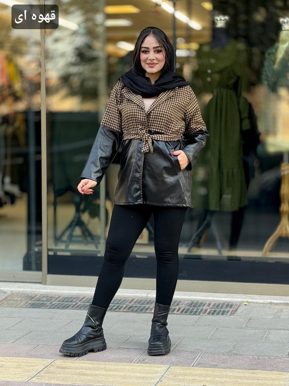 پالتو زنانه و دخترانه ترند ترکیبی چرم و پیچازی ، پالتو ترکیبی چرم و پشمی موهر زنانه و دخترانه ترند