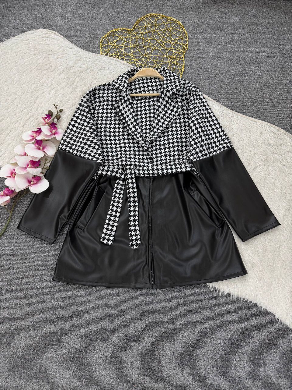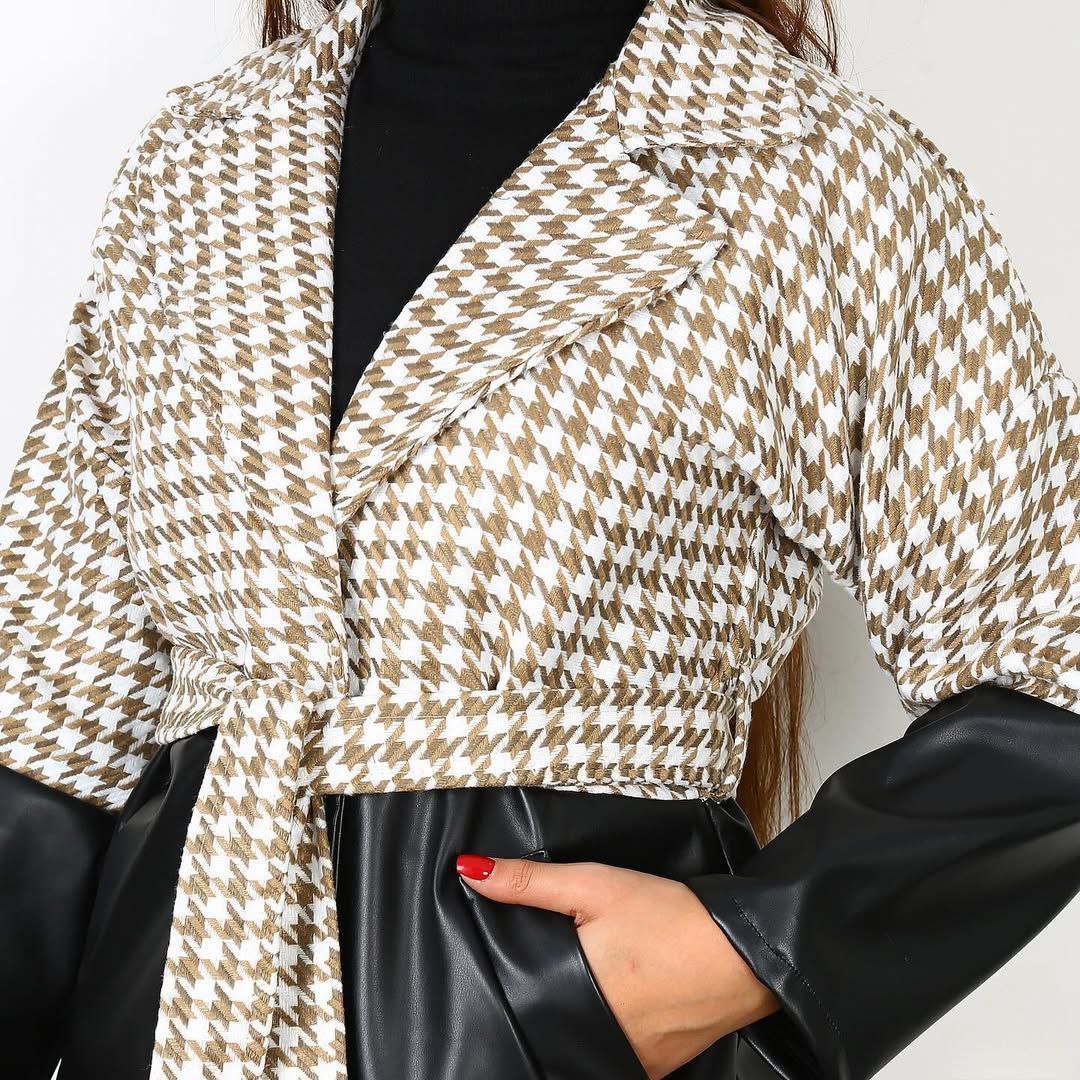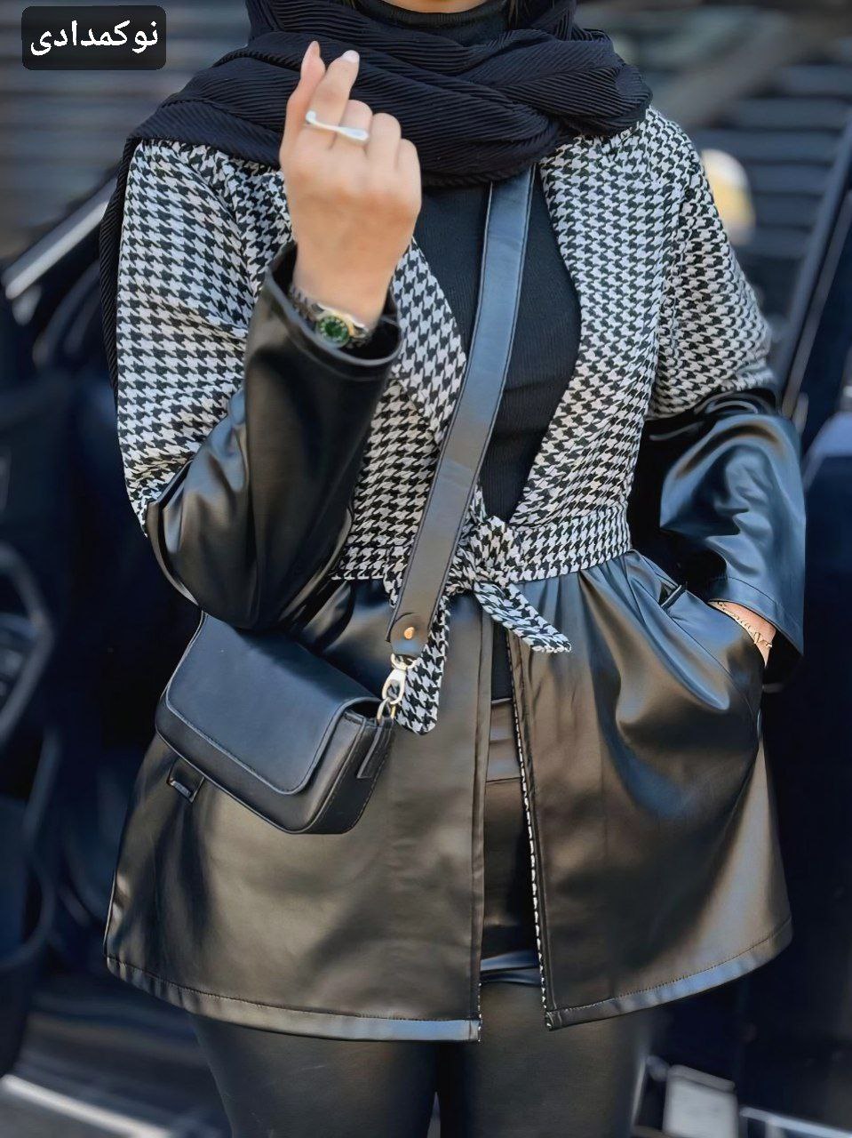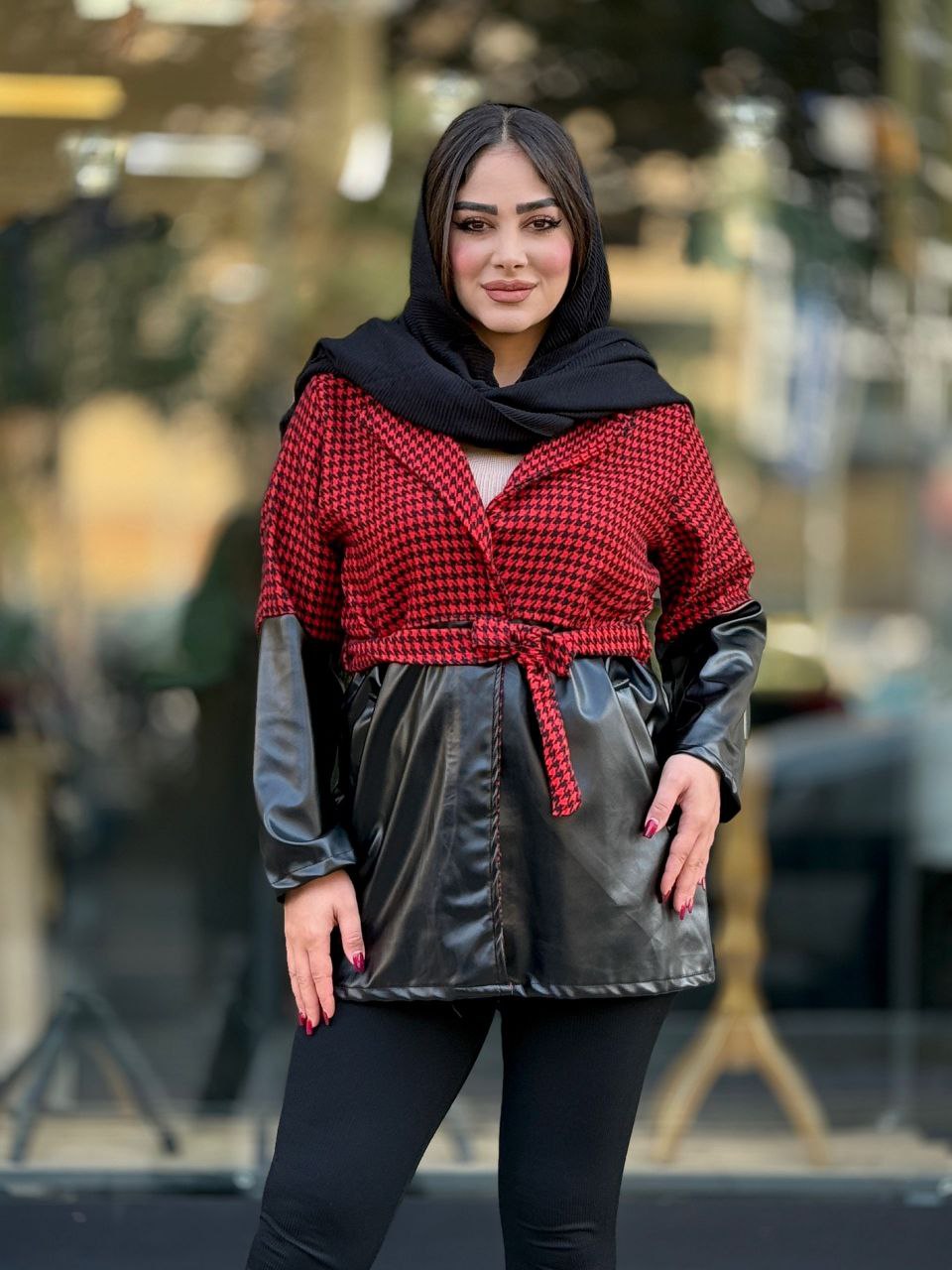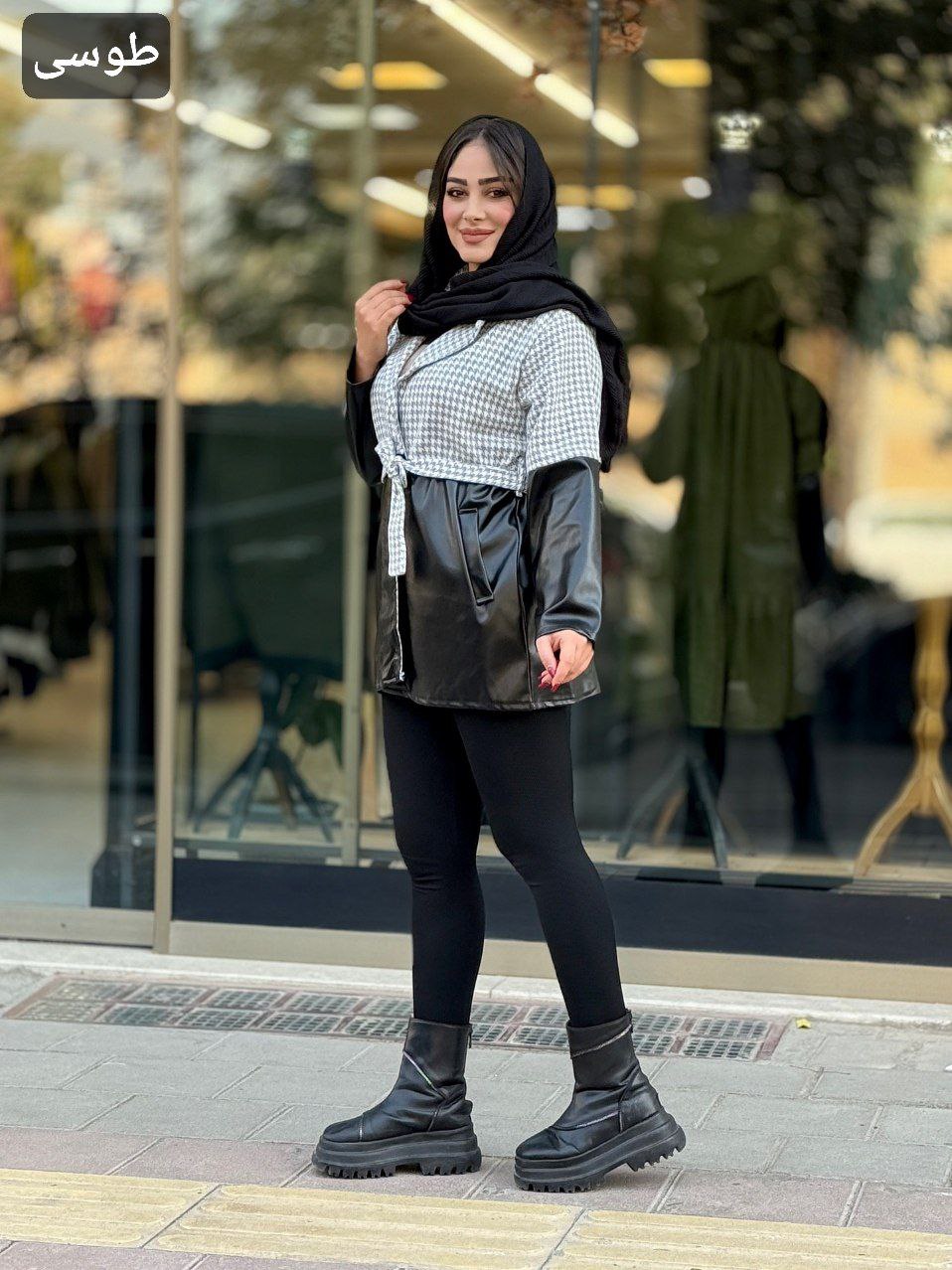 پالتو زنانه و دخترانه ترند ترکیبی چرم و پیچازی ، پالتو ترکیبی چرم و پشمی موهر زنانه و دخترانه ترند