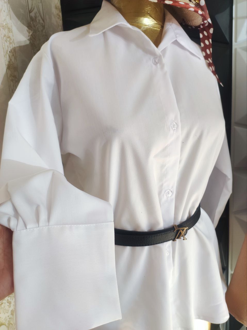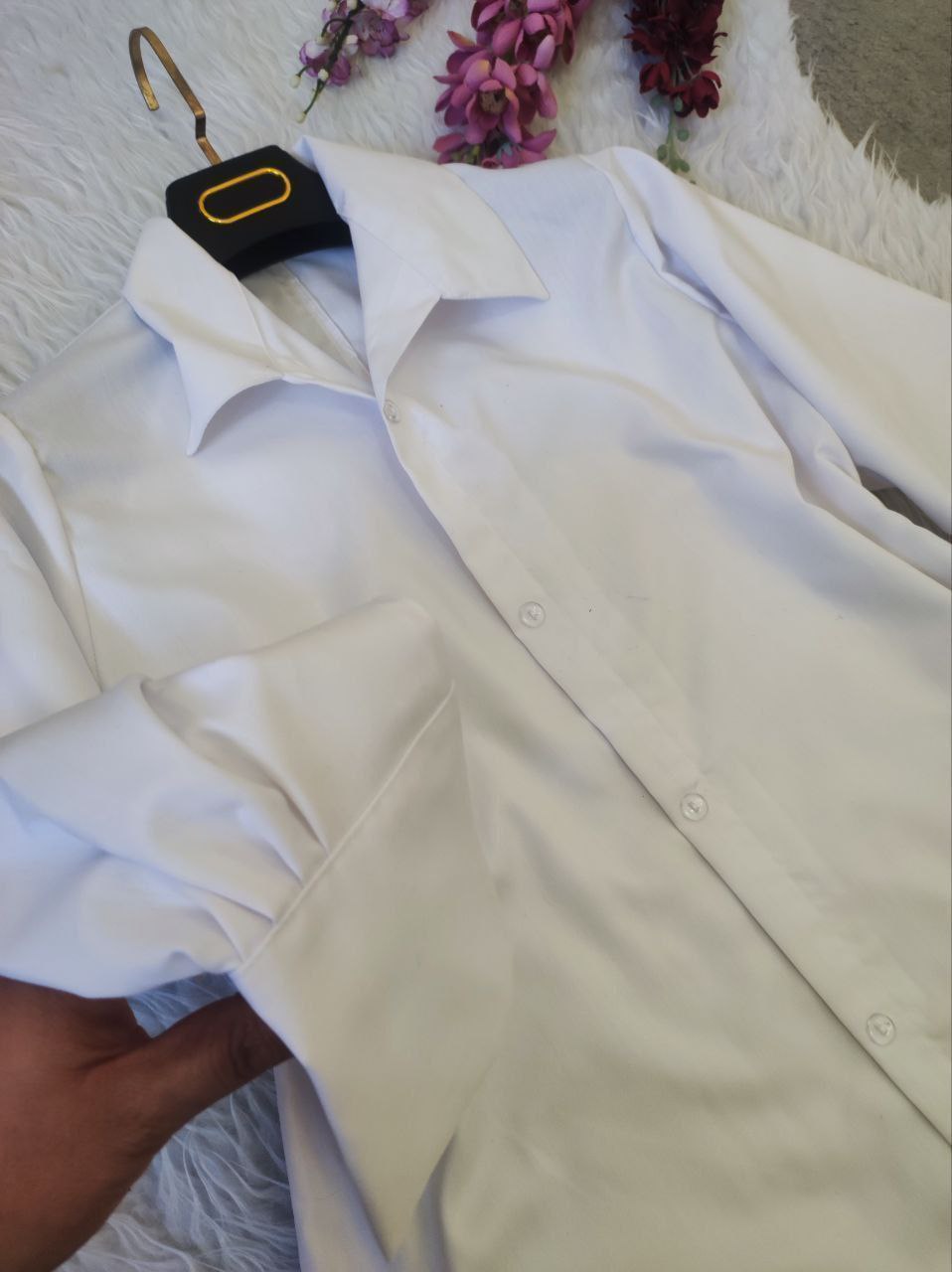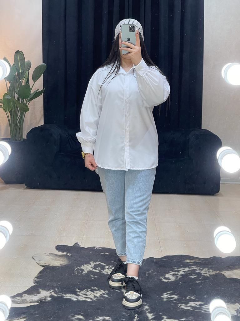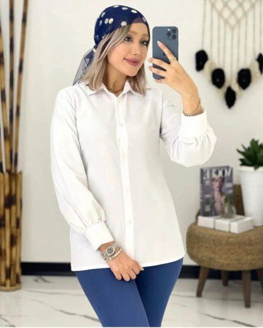شناسه : #84535👚نام : شومیز سفید تکی💥💫🧵جنس : ترگال درجه یک💥💫🧶رنگ بندی :  سفید💥💫👭سایز ها :  فری سایز تا 46💥💫💥💫💫قد کار 70💫دورسینه حدودا103💫قداستین56💫آستین مچی دکمه نمیخوره دقیق ژورنال پایین کار هلال نیست راسته✅