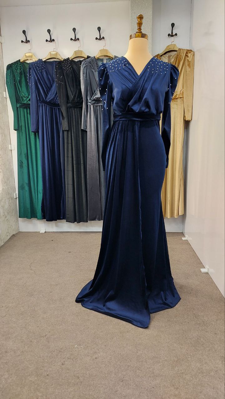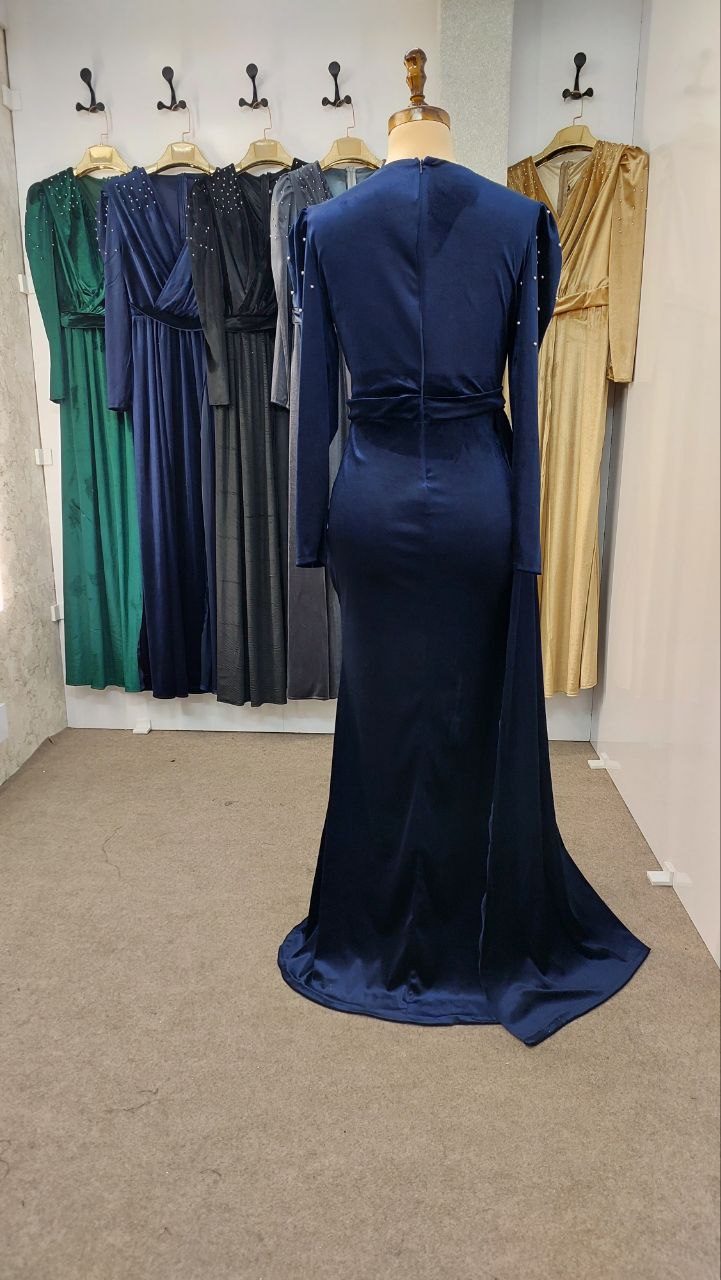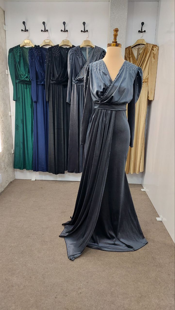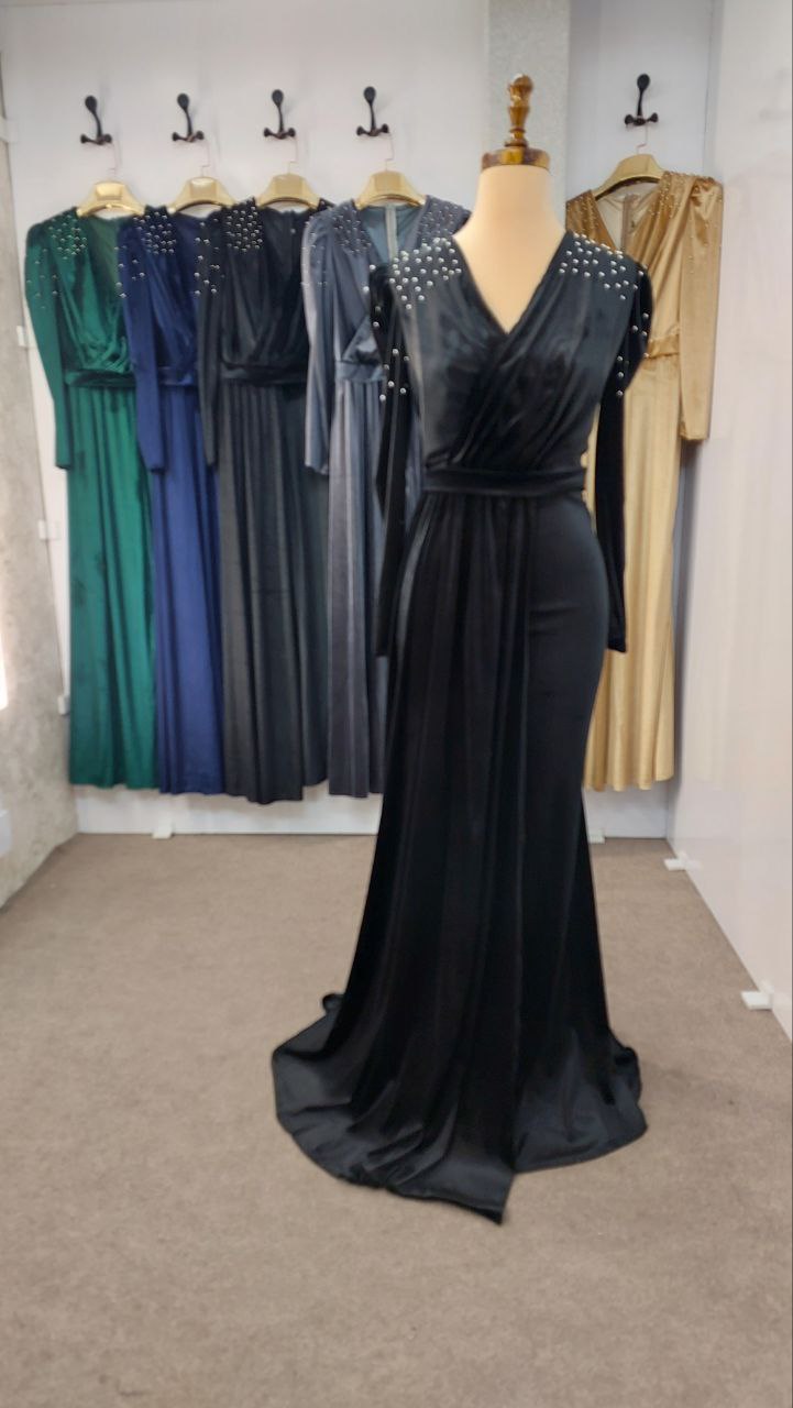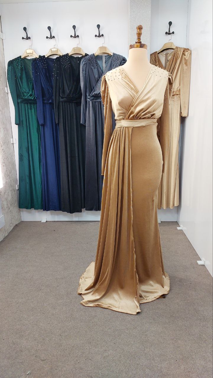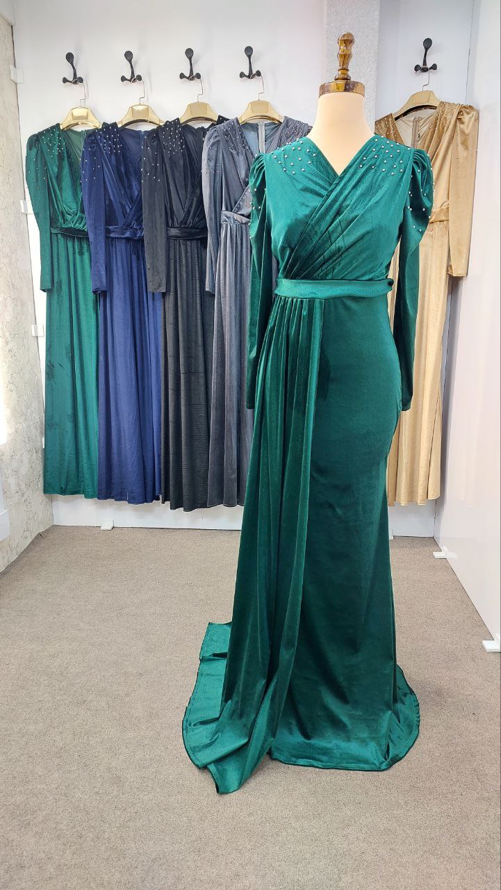 لباس ماکسی مجلسی زنانه و دخترانه مخمل با مروارید پامچ شده