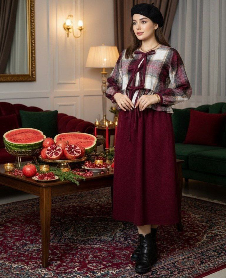 ست کت و دامن پاییزه و زمستانه خاص و شیک زنانه و دخترانه ، ست کت و دامن پشمی و کبریتی درجه یک زنانه