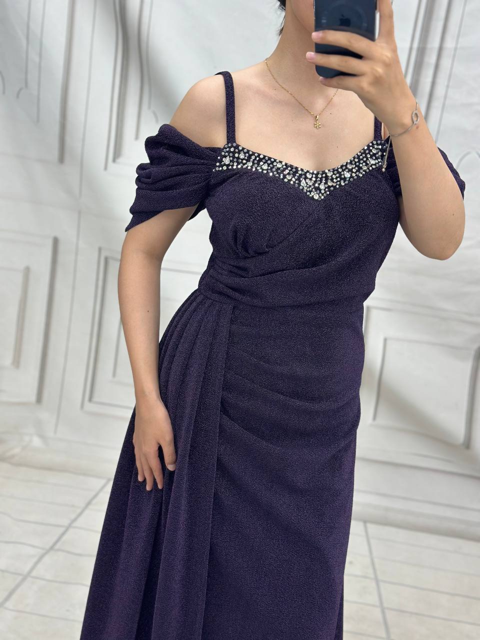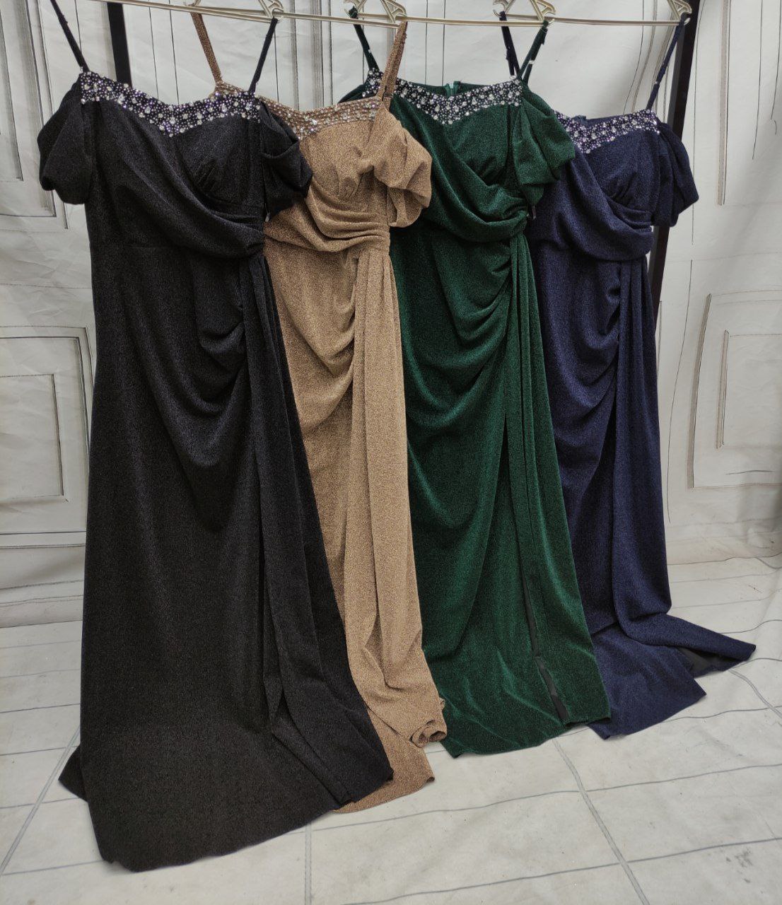 شناسه : #95549نام : کمند جنس : لمه درجه یک خرج کار کریستال دوزی رنگ بندی : بنفش, سرمه ای, طلای, مشکی سایز ها : 36.38, 40, 42, 44, 46, 48, 50 قد150 ، کیفیت تضمینی ، تا حالا هیچ نارضایتی بابت لباس مجلسی نداشتم ، سوالی در مورد رنگ و جنس و سایز دارید زنگ بزنید.
