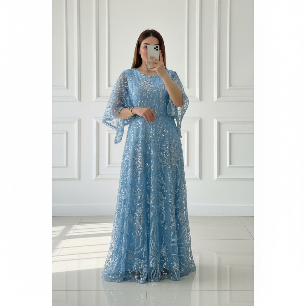 لباس مجلسی زنانه و دخترانه شاین برجسته با مدل خاص و خیره کننده ، لبلس مجلسی شاین پارچه وارداتی و مزون دوزی