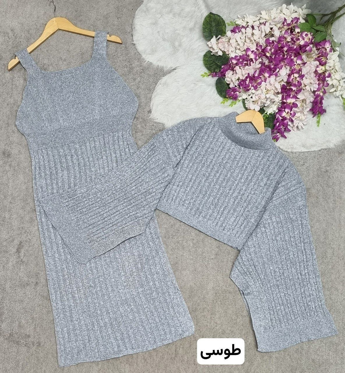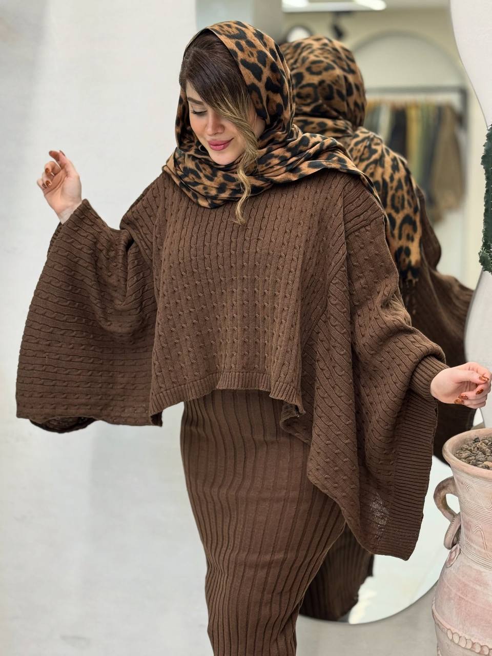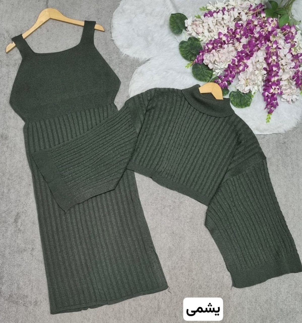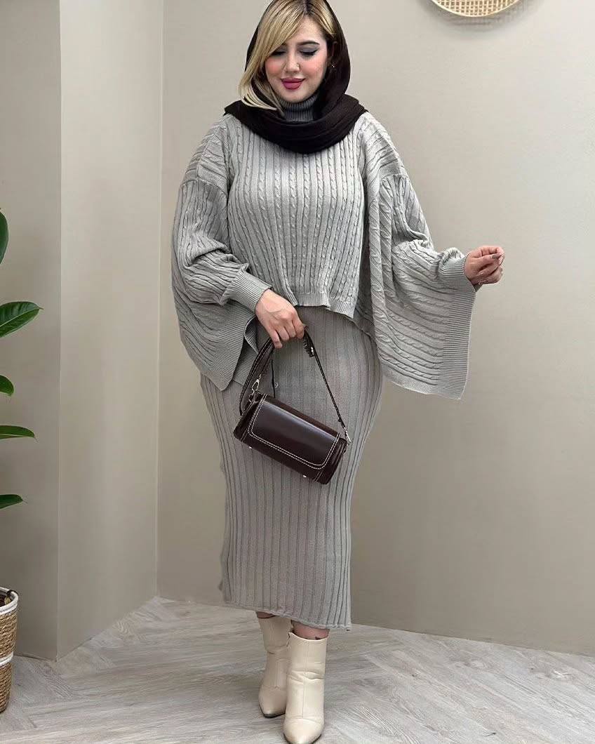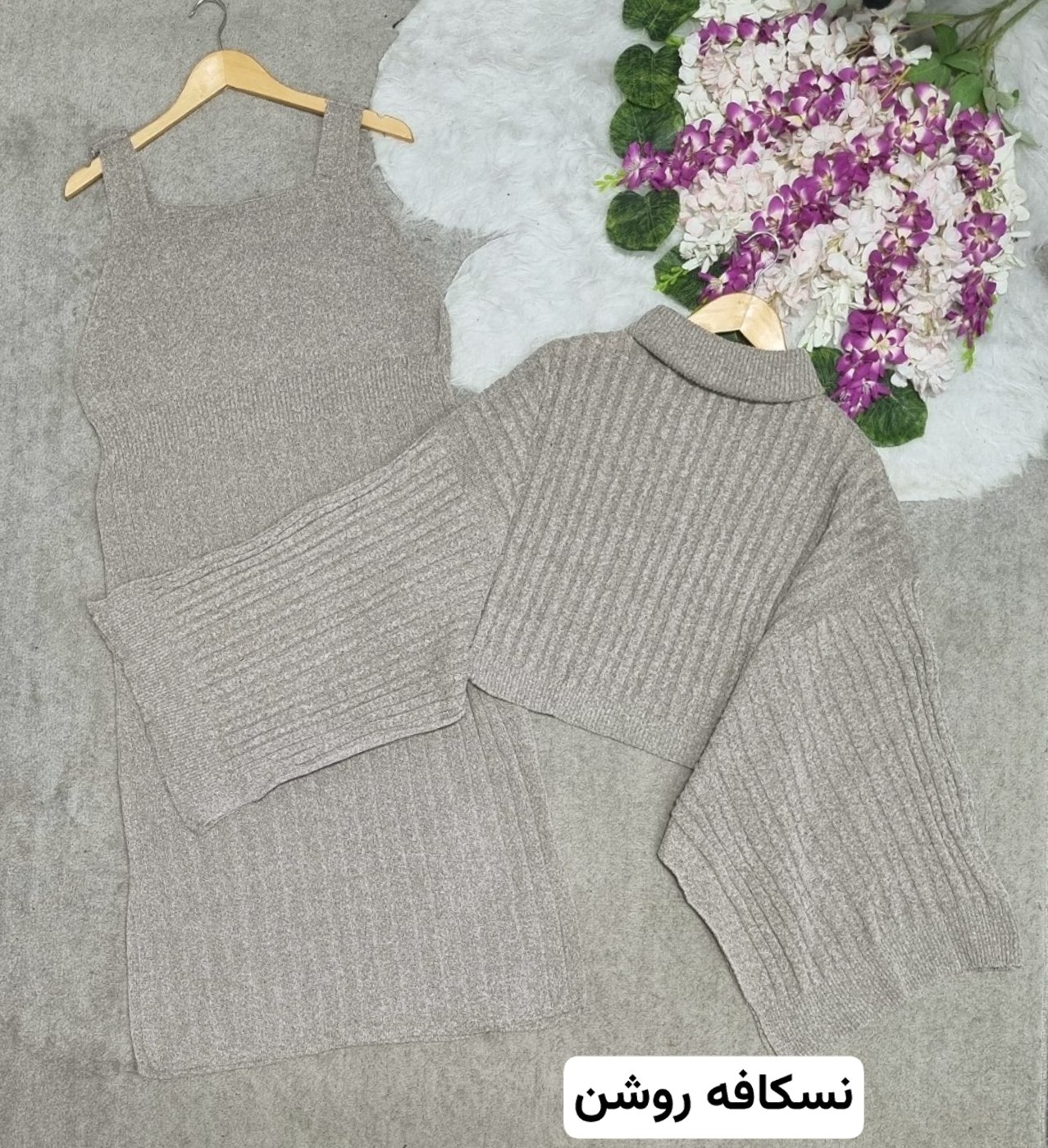 ست دو تیکه بافت زنانه و دخترانه پاییزه و زمستانه، ست بافت دو تیکه سارافون و رویه شیک و جدید و ترند