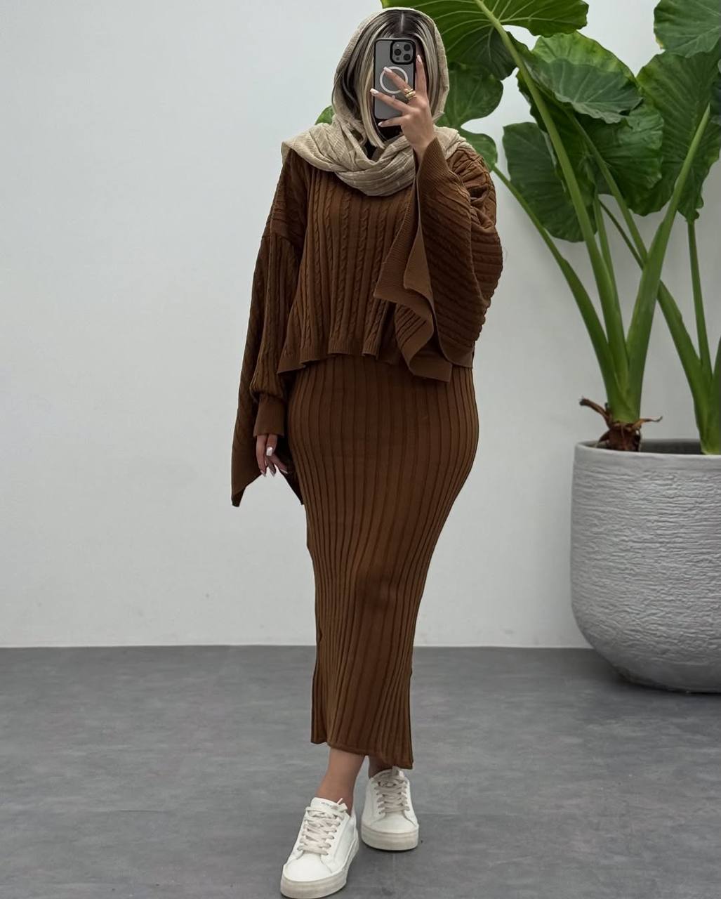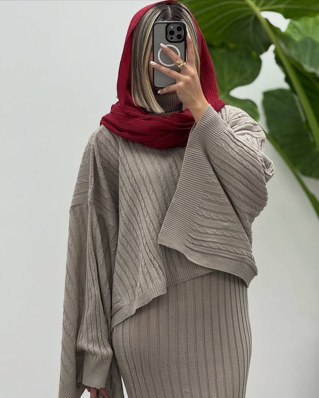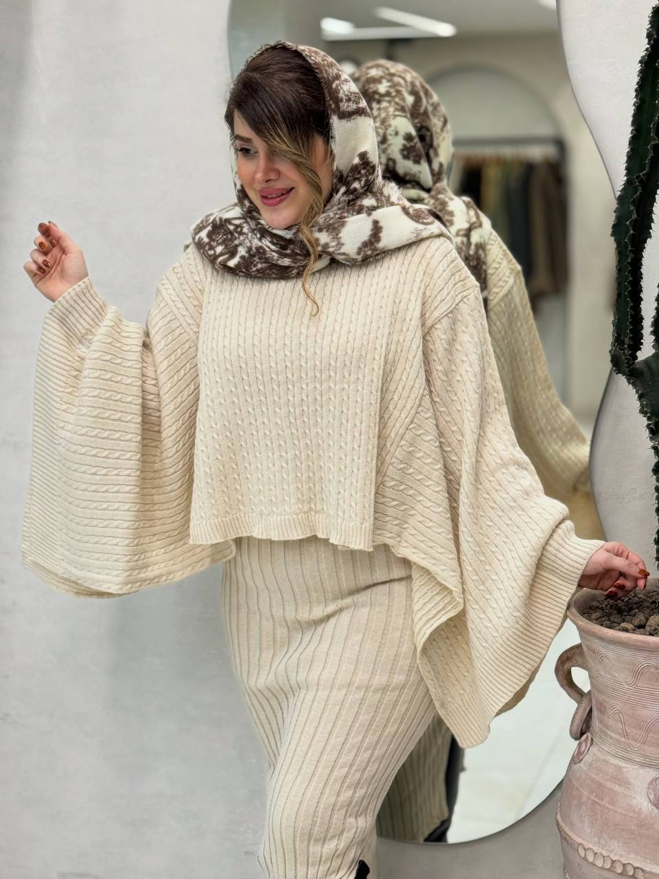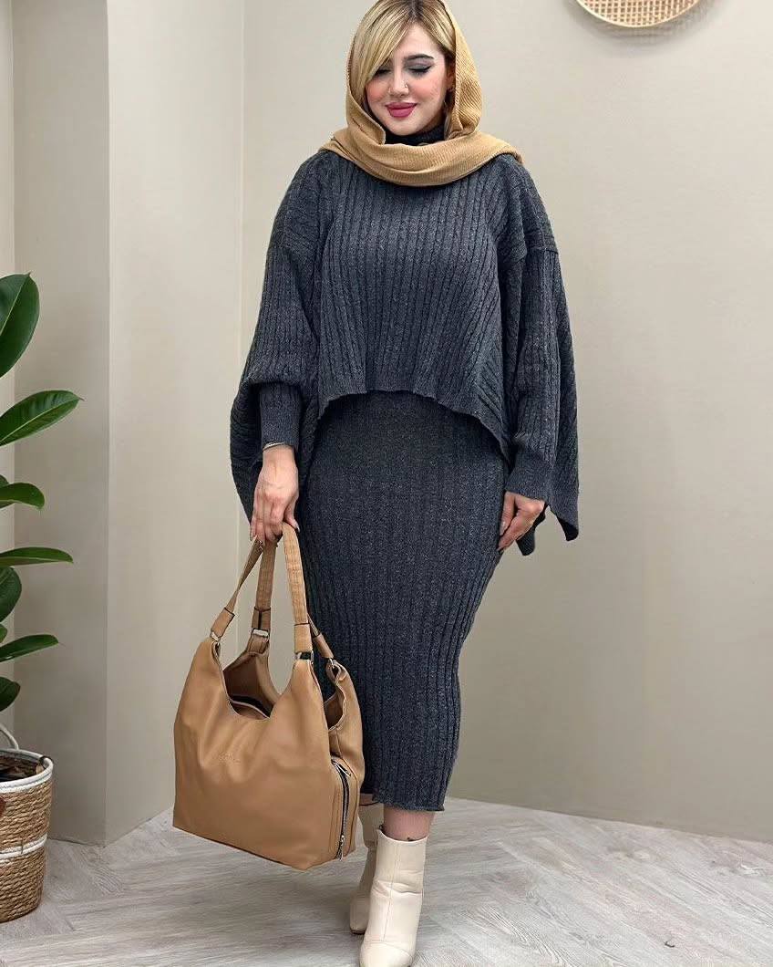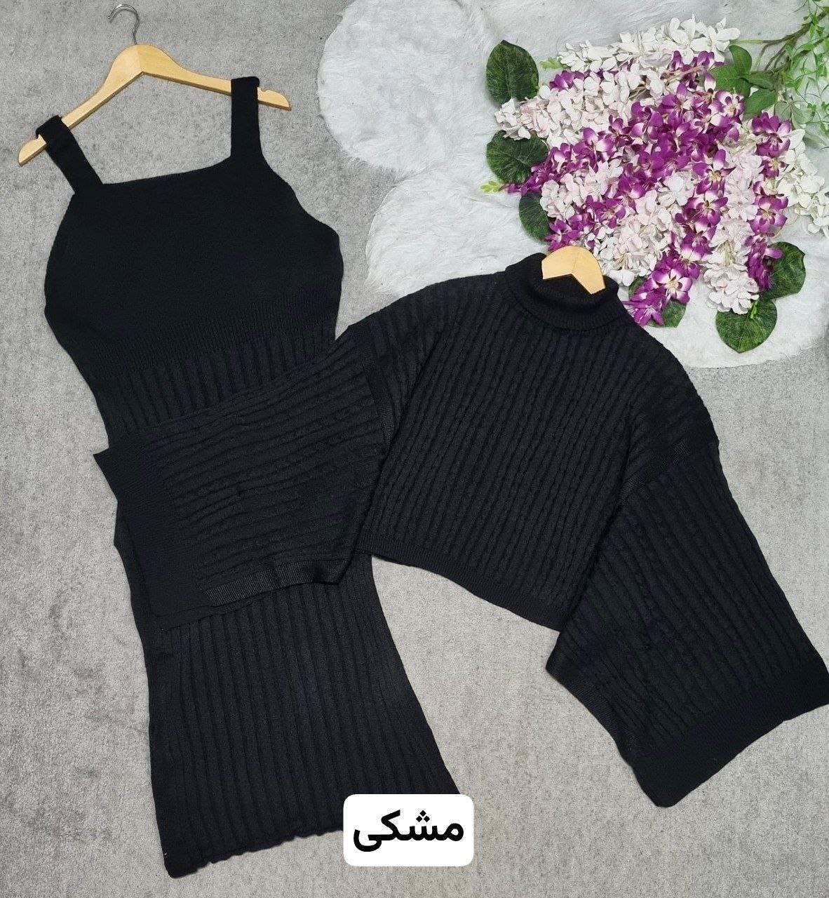 ست دو تیکه بافت زنانه و دخترانه پاییزه و زمستانه، ست بافت دو تیکه سارافون و رویه شیک و جدید و ترند