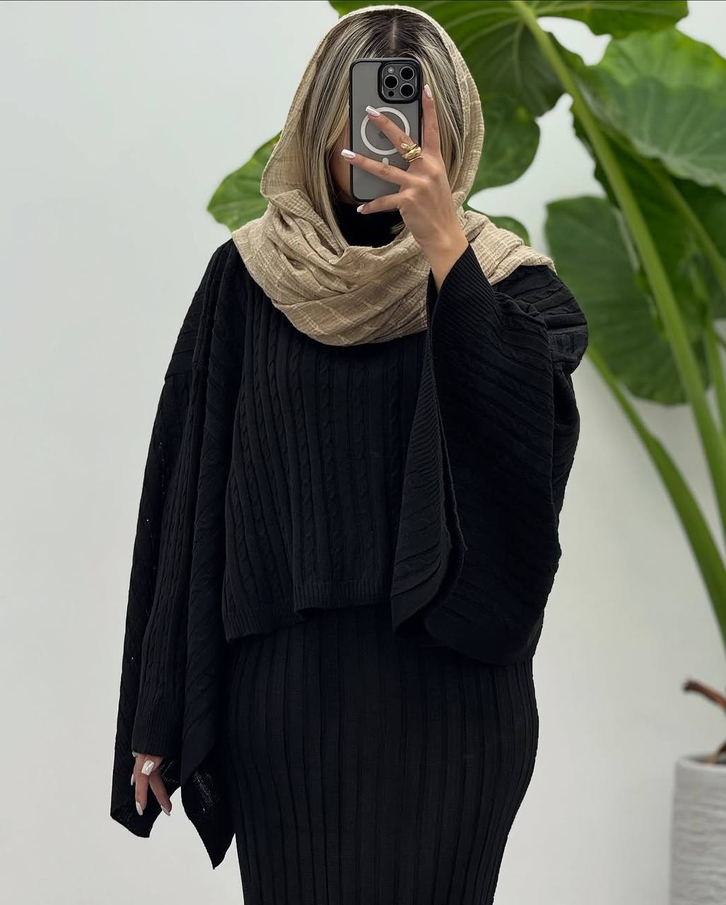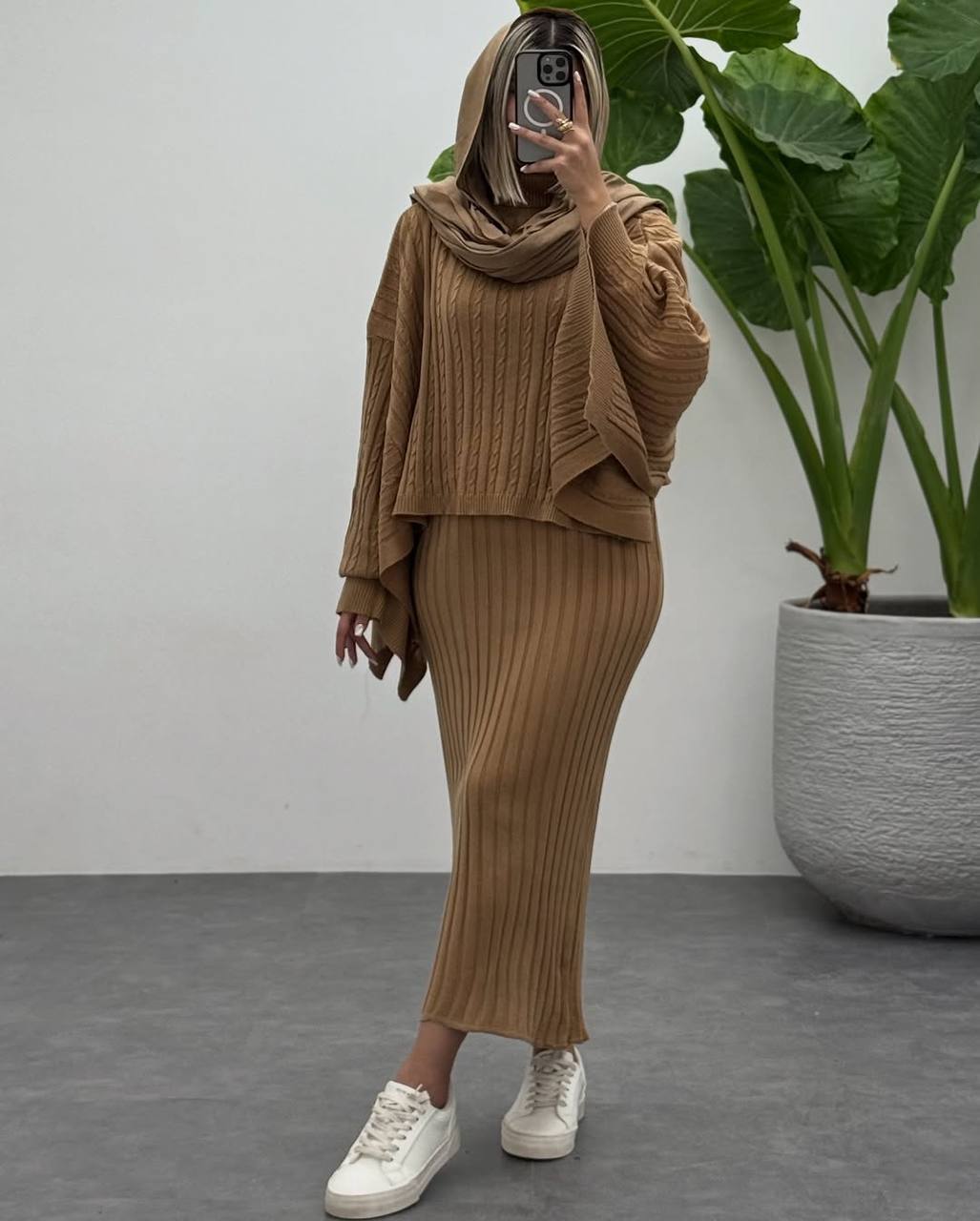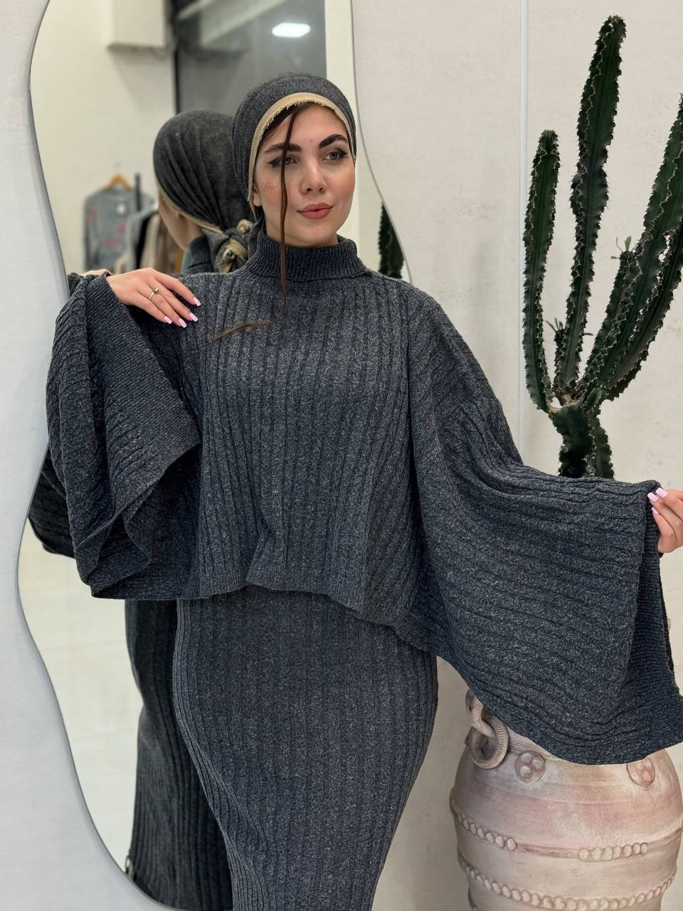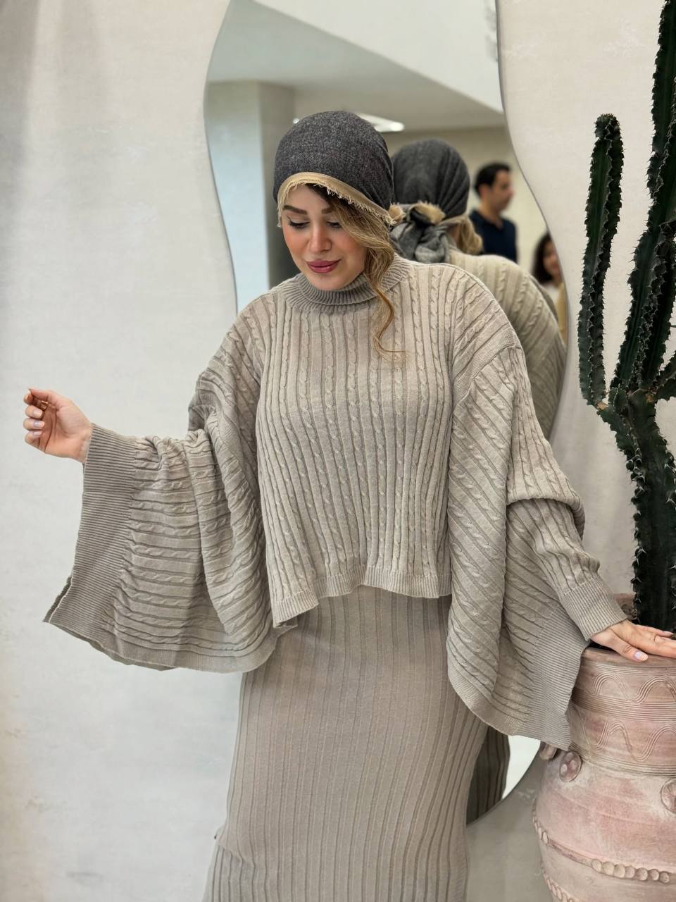 ست دو تیکه بافت زنانه و دخترانه پاییزه و زمستانه، ست بافت دو تیکه سارافون و رویه شیک و جدید و ترند