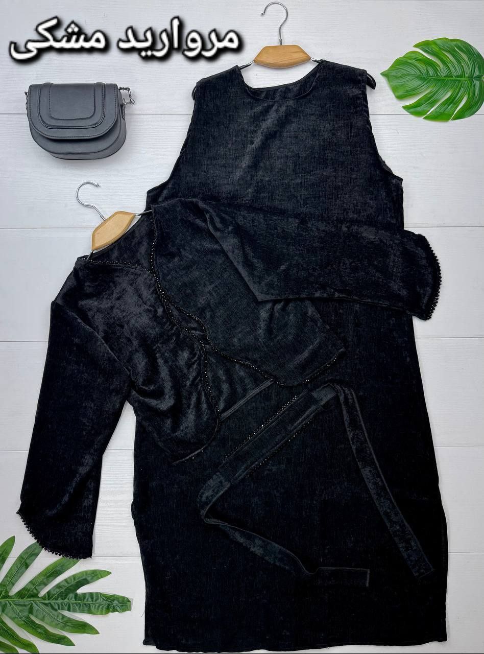 ست سه تیکه کت پ سارافون و کمربند زنانه و دخترانه ، ست کت سارافون و کمربند زنانه مخمل درجه یک