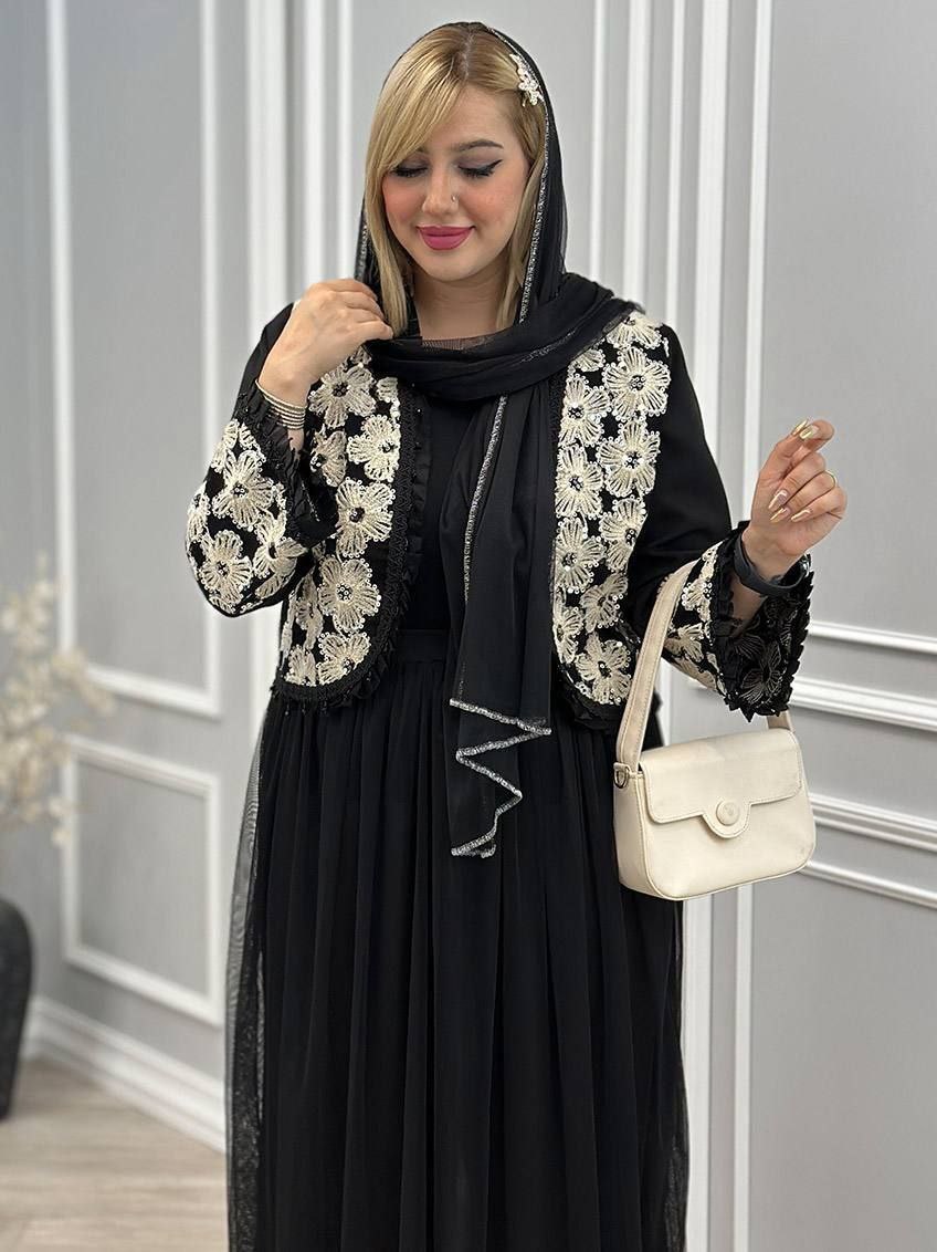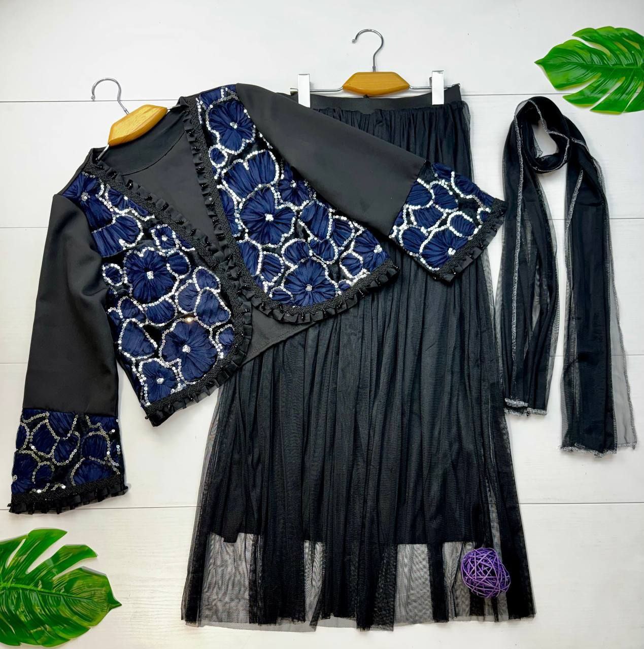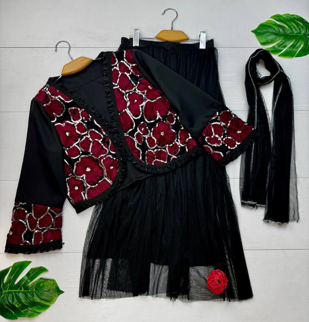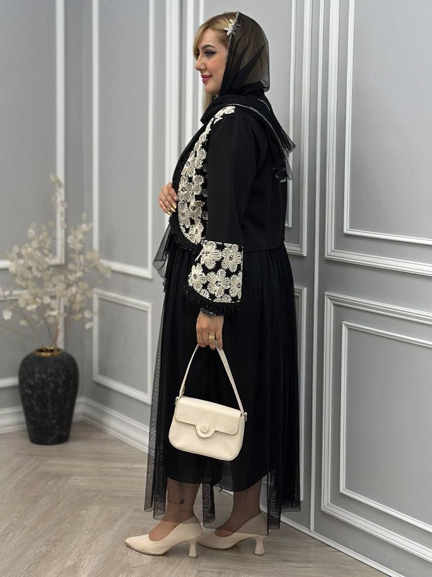 ست سه تیکه کت و دامن و شال عیدانه زنانه ، ست سه تیکه کت و دامن و شال مازراتی تور خرجکار هندی زنانه شیک و جدید و عیدانه
