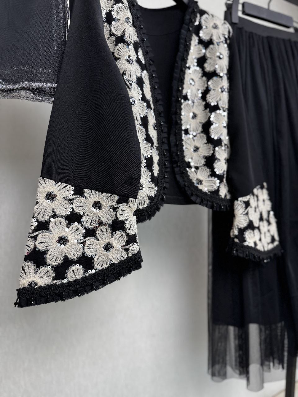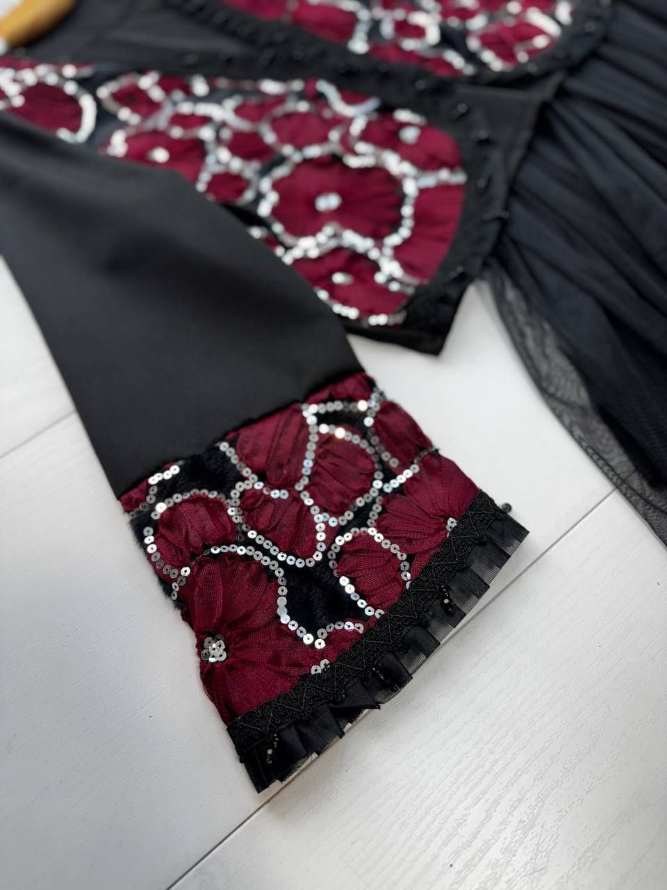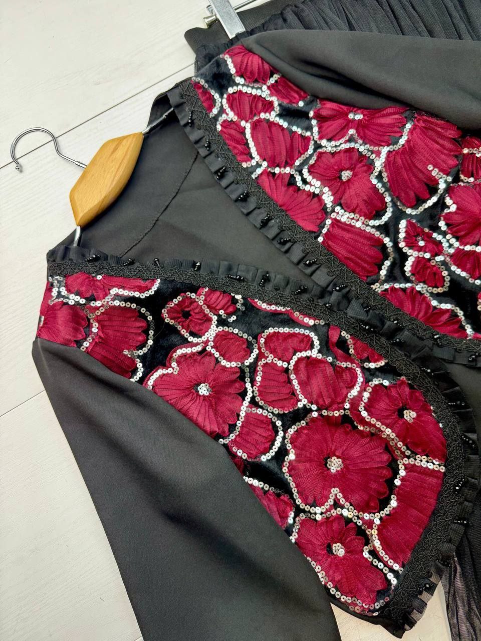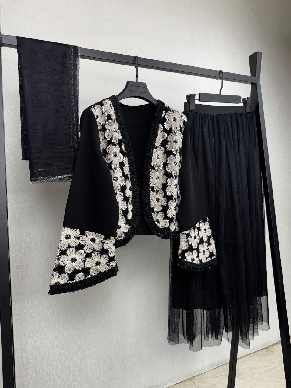 ست سه تیکه کت و دامن و شال عیدانه زنانه ، ست سه تیکه کت و دامن و شال مازراتی تور خرجکار هندی زنانه شیک و جدید و عیدانه