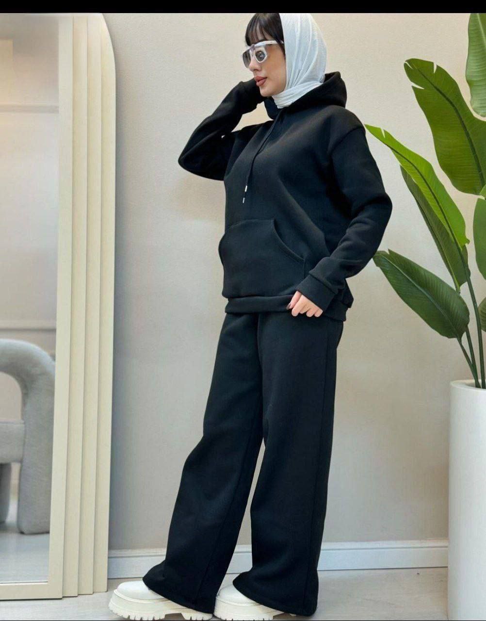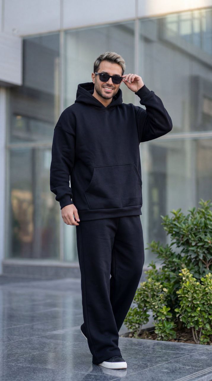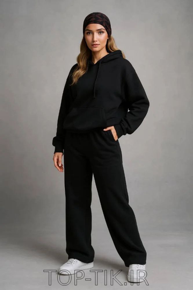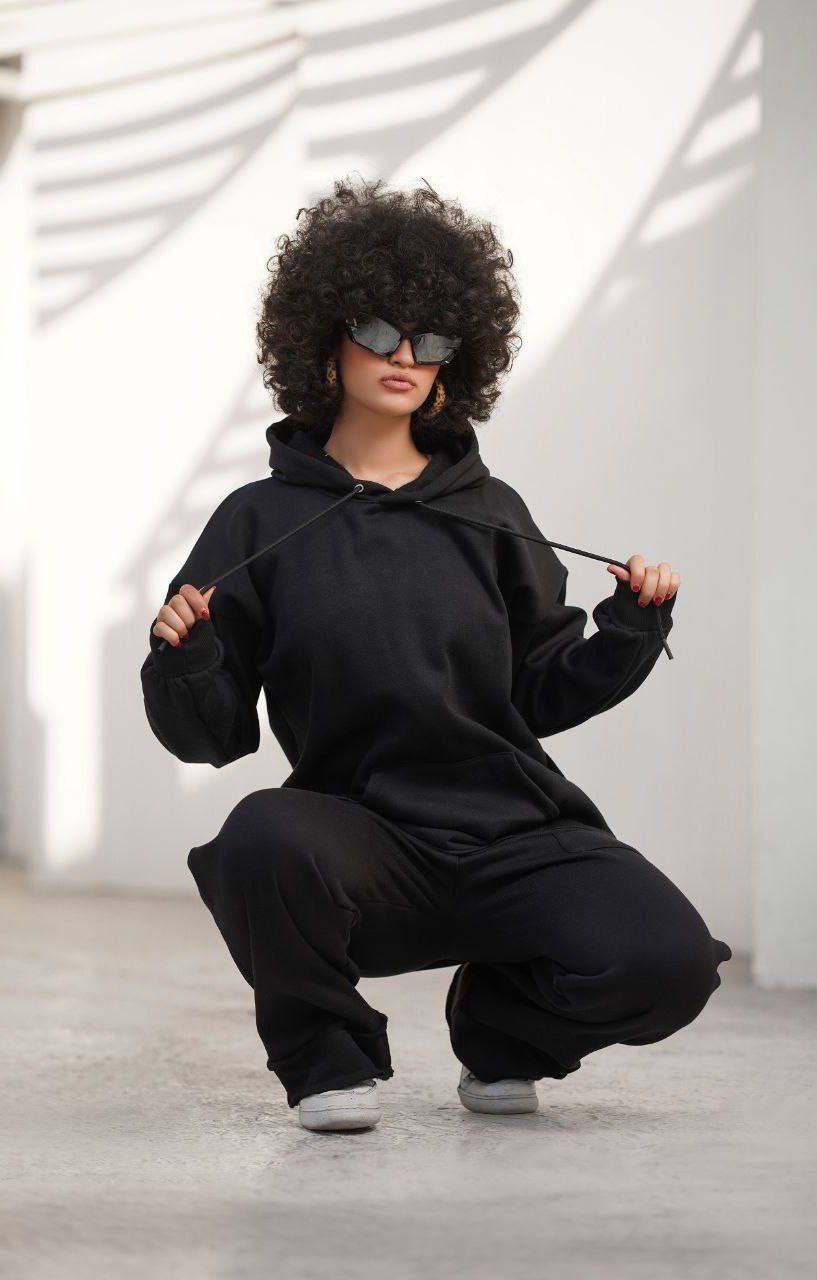 ست هودی و شلوار اسپرت زنانه و مردانه ، ست دورس و شلوار تو کرکی اسپرت مشکی با کیفیت