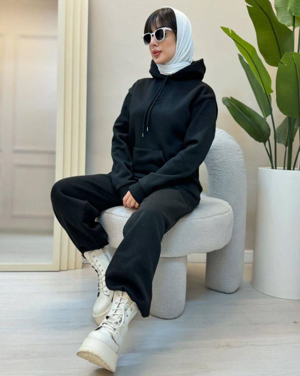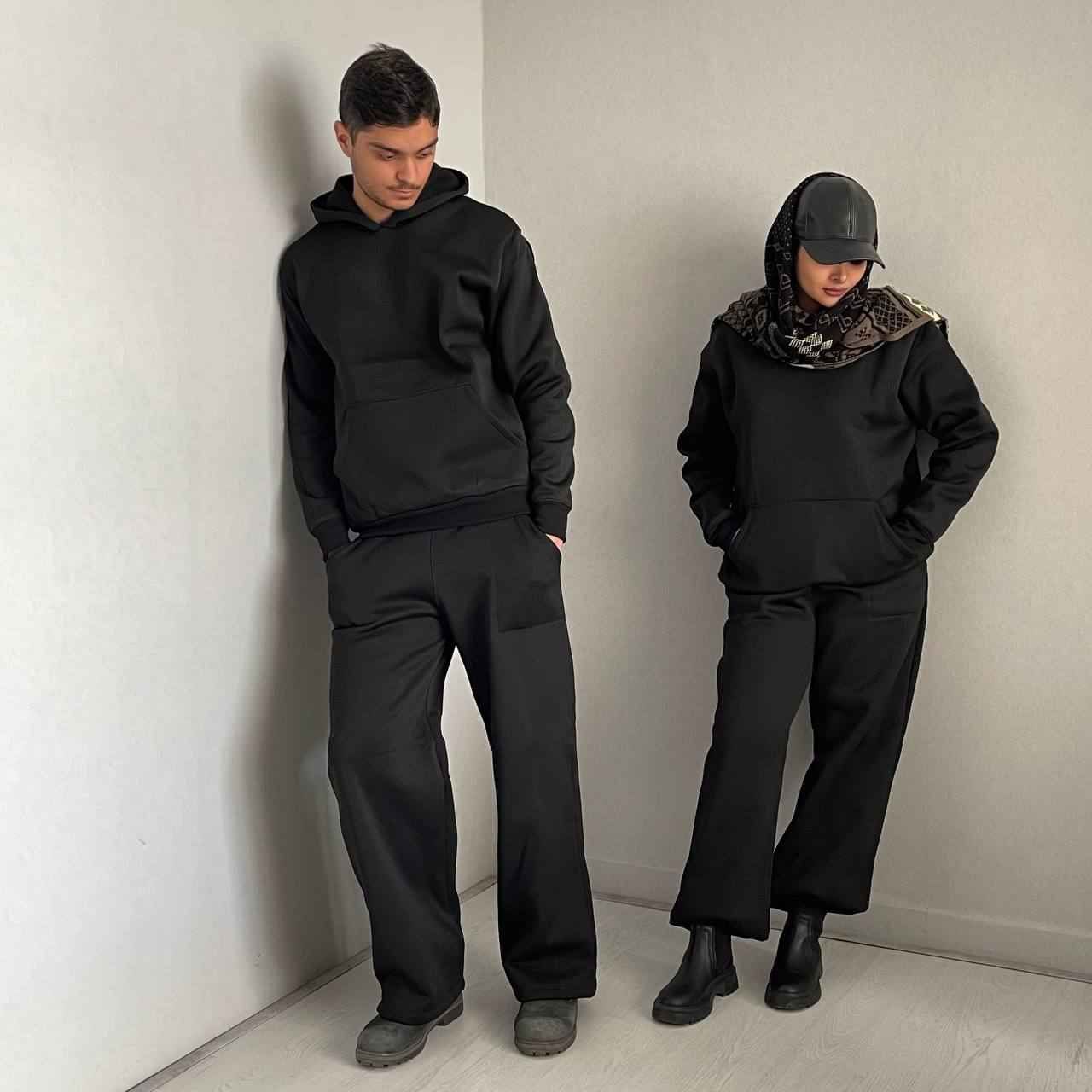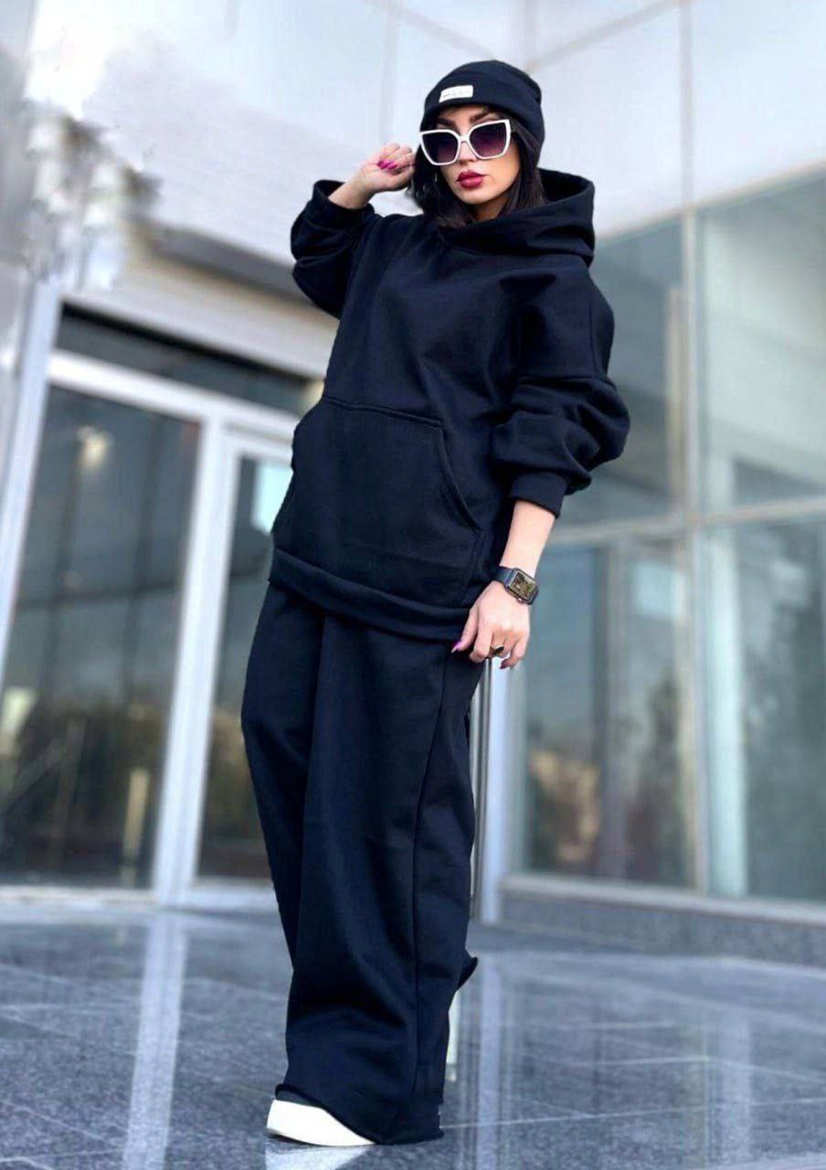 ست هودی و شلوار اسپرت زنانه و مردانه ، ست دورس و شلوار تو کرکی اسپرت مشکی با کیفیت