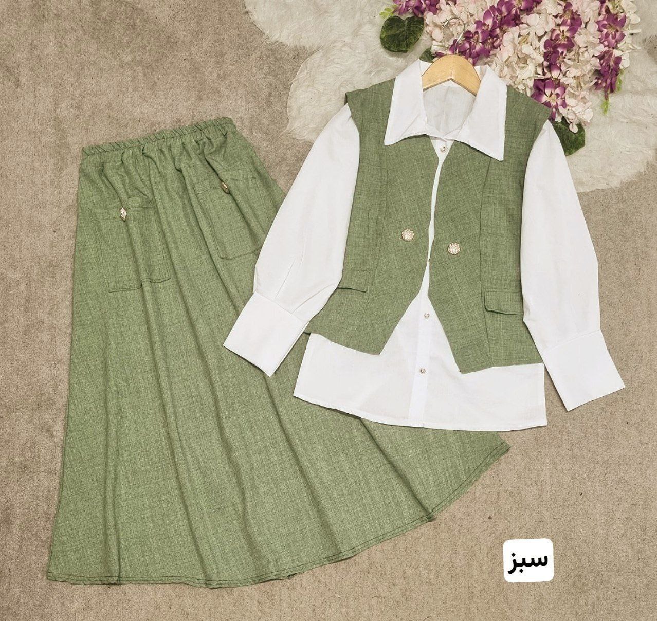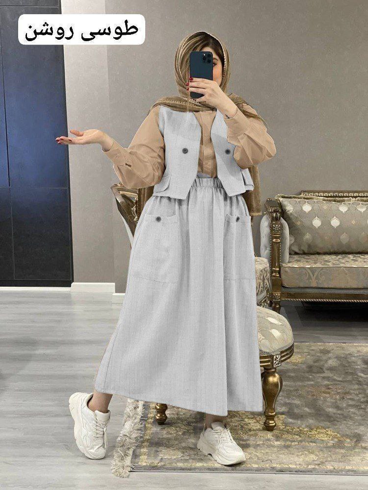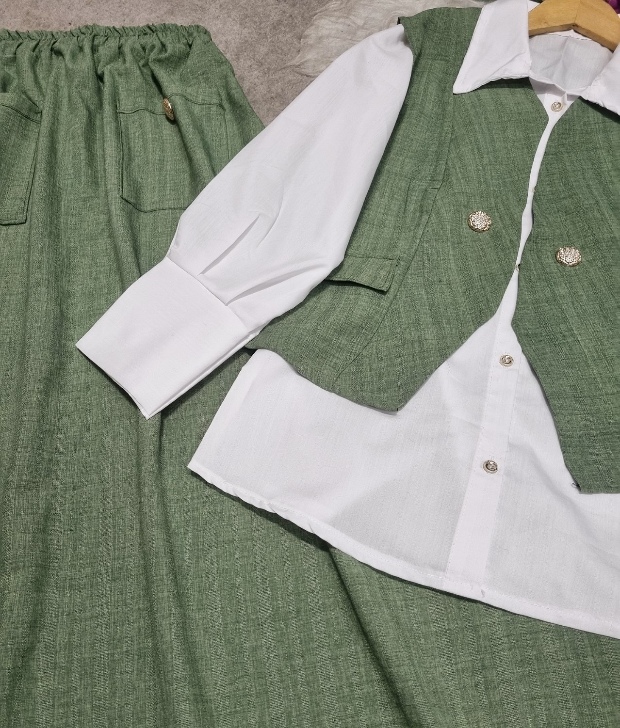 ست سه تیکه شومیز و دامن و جلیقه سولماز ، ست سه تیکه شونیز و دامن و جلیقه زنانه