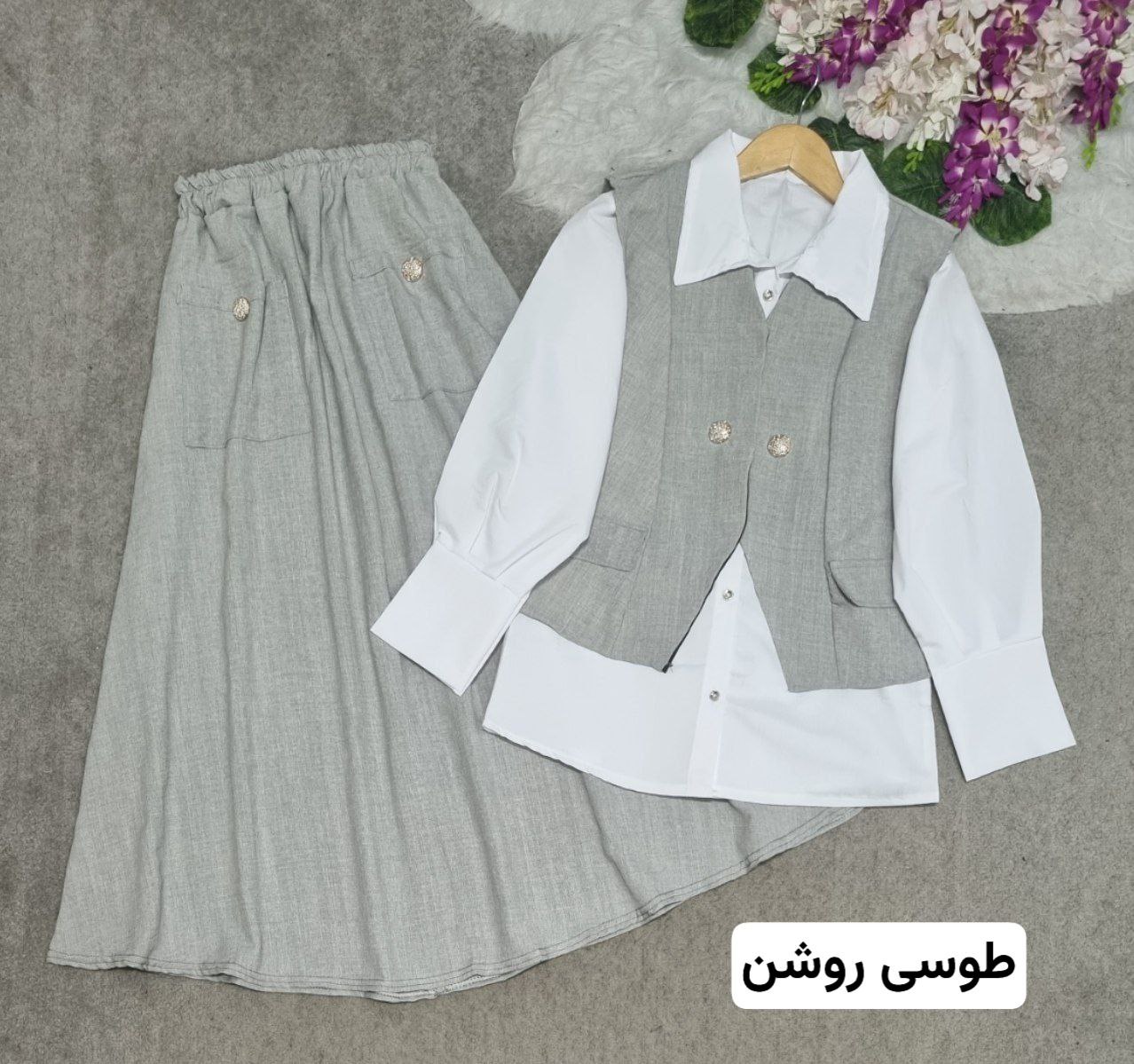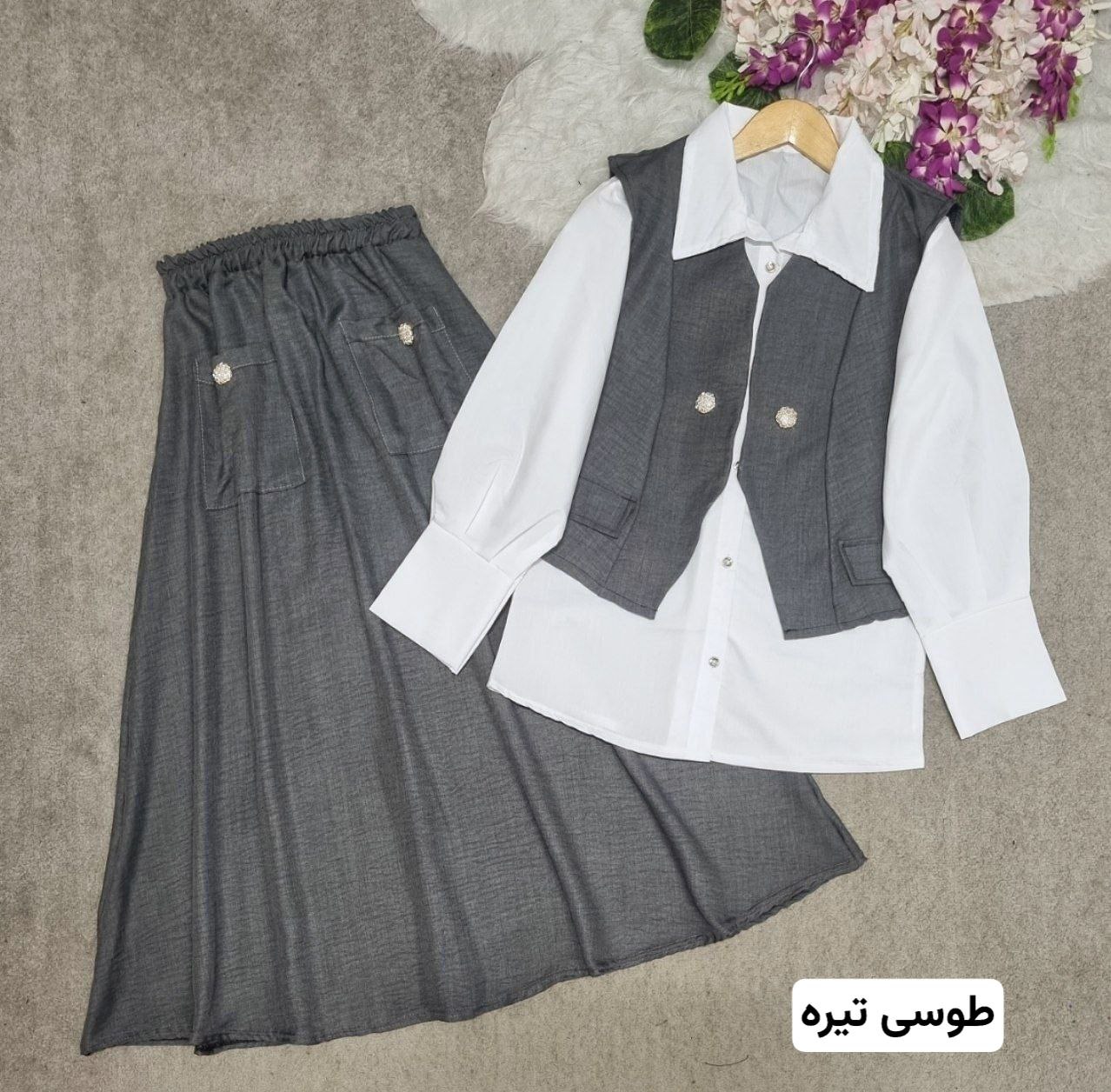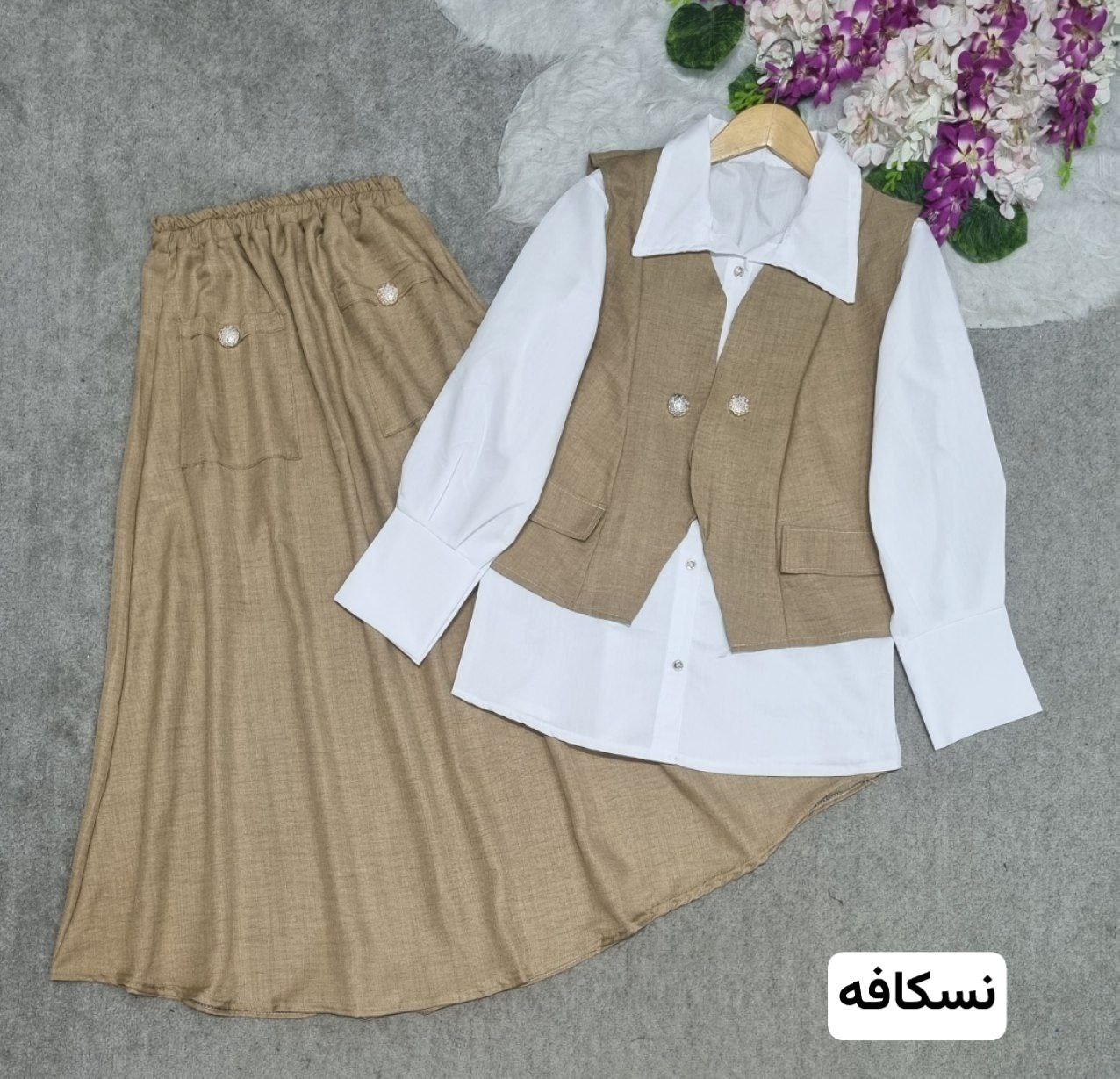 ست سه تیکه شومیز و دامن و جلیقه سولماز ، ست سه تیکه شونیز و دامن و جلیقه زنانه