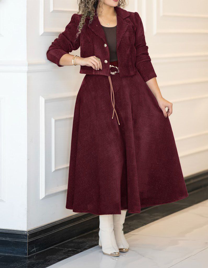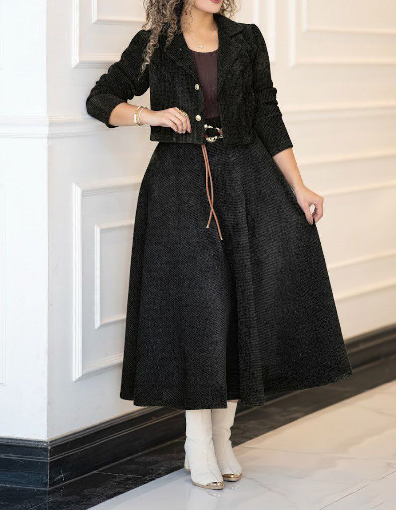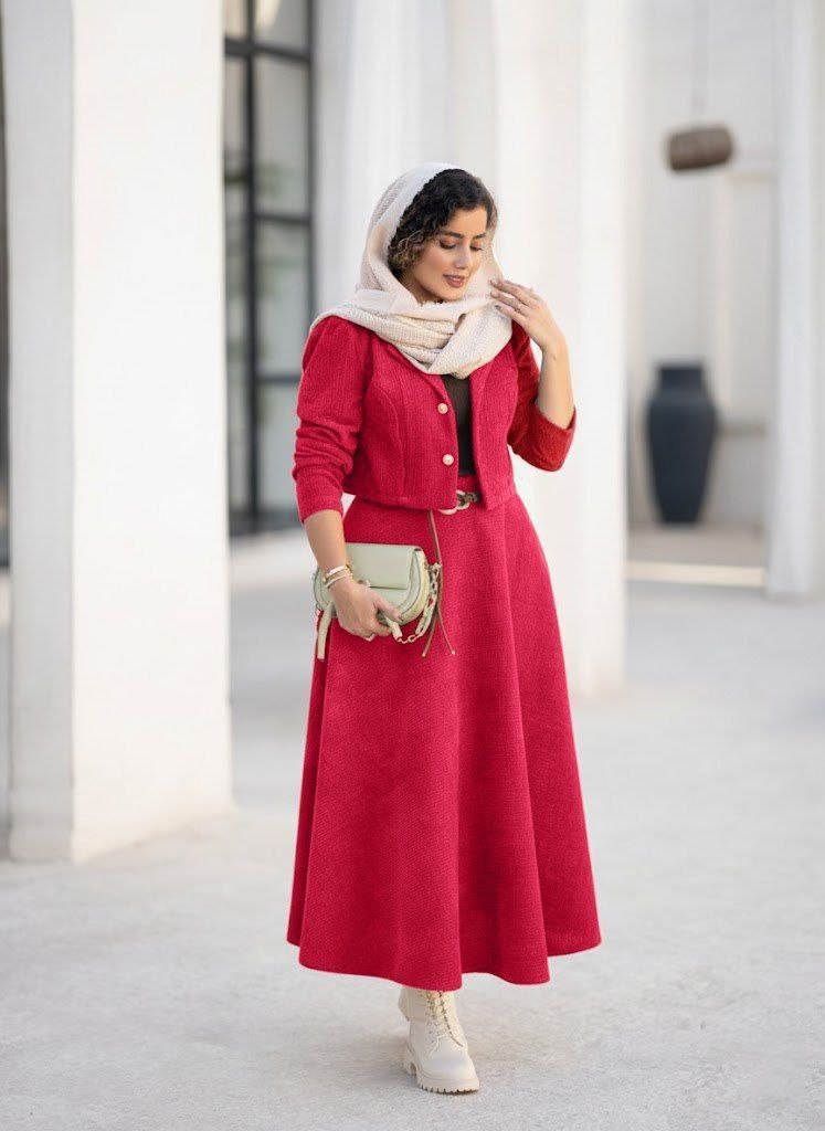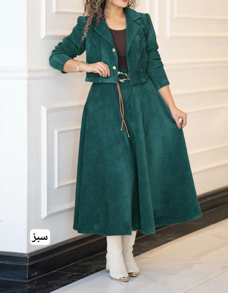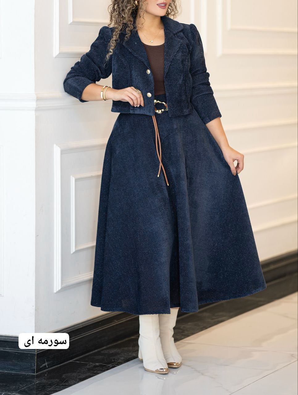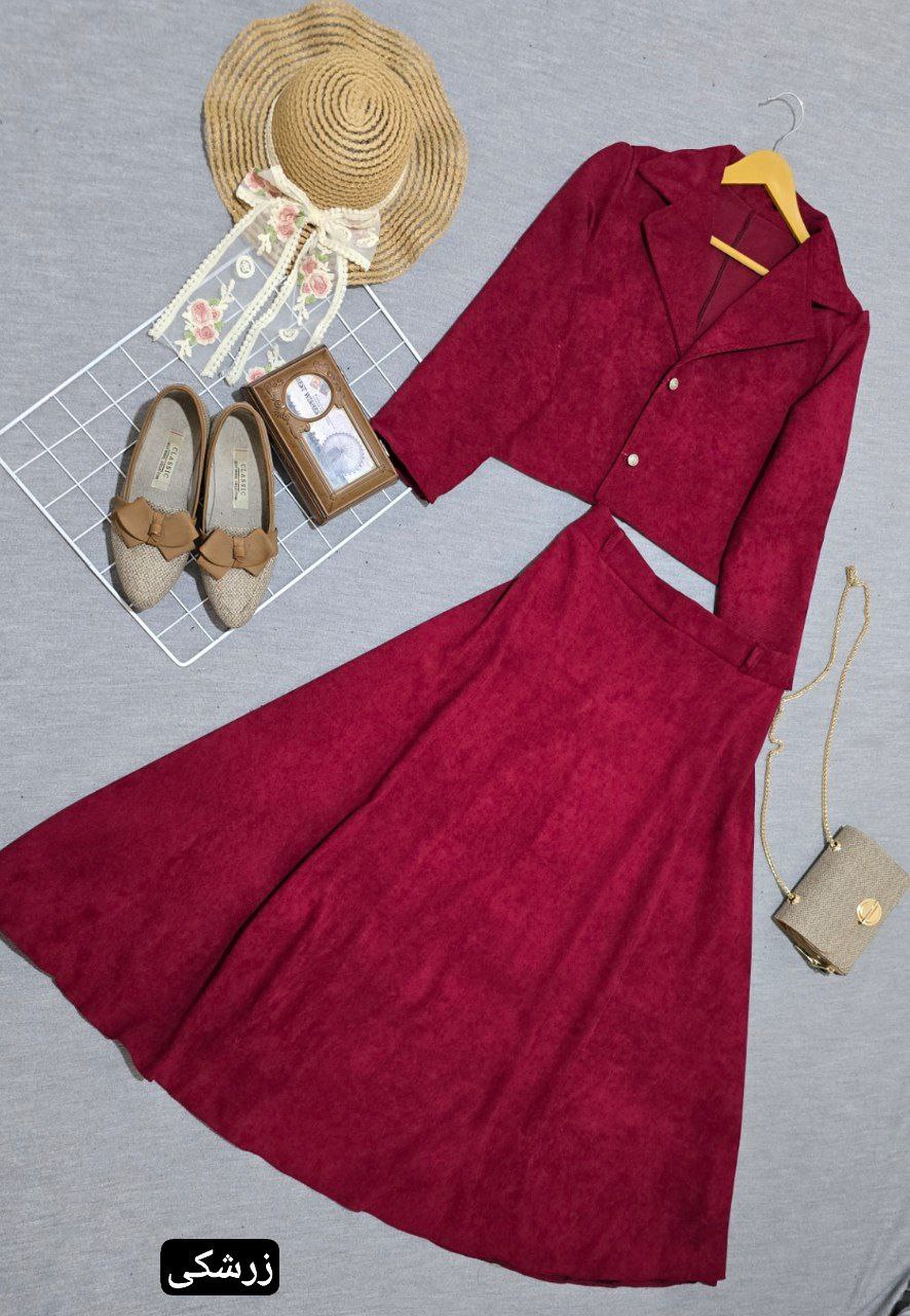 ست کت و دامن زنانه شکیلا ، ست کت و دامن کبریتی درجه یک زنانه شیک و جذاب پاییزه