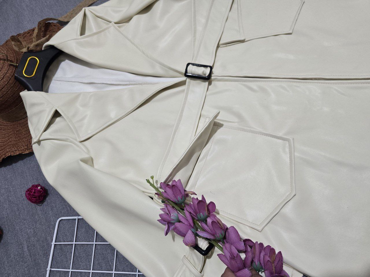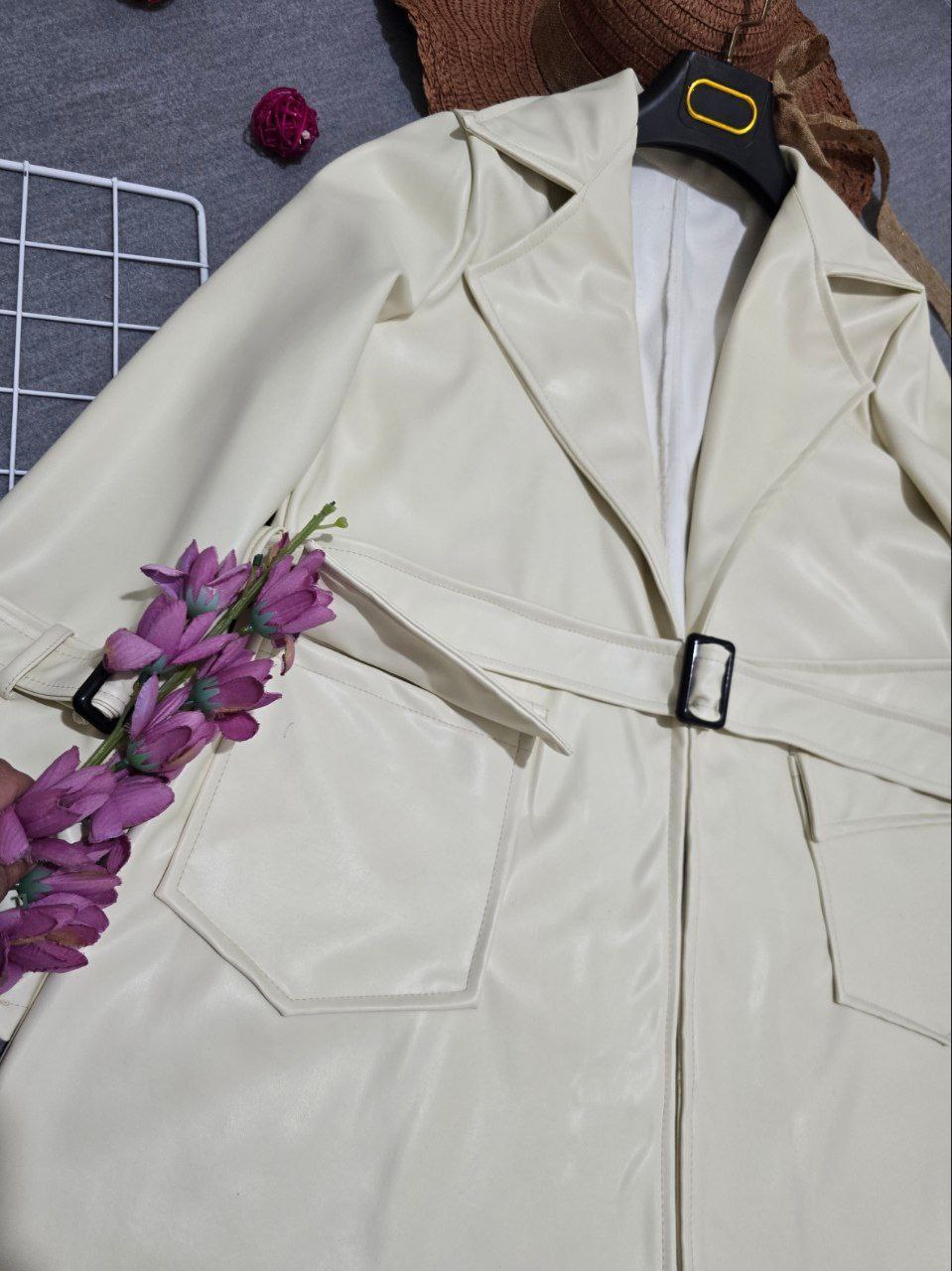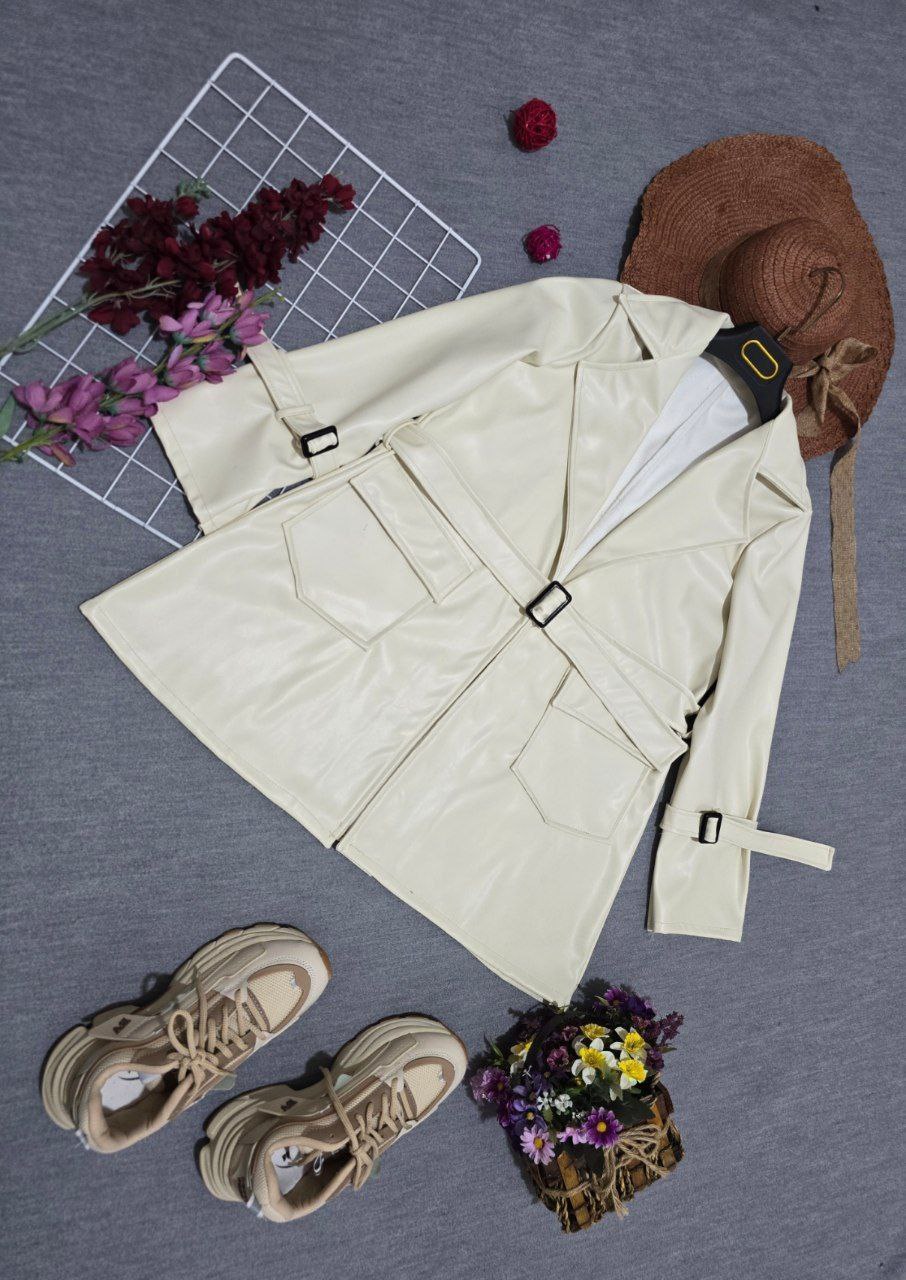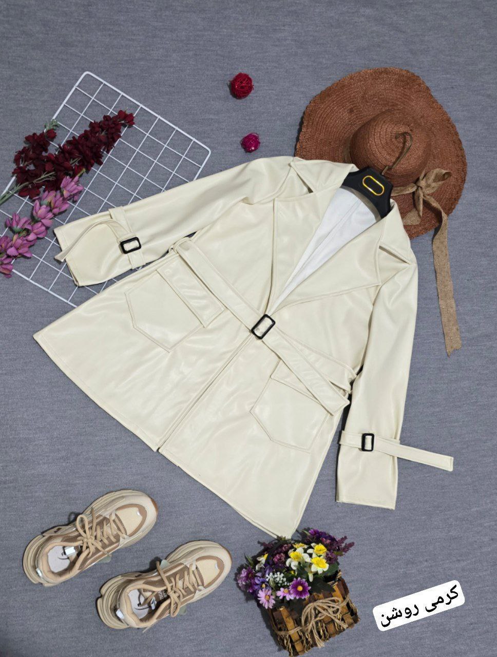 شناسه : #80249👚نام : پالتو چرم آلیزا💥😵💫🧶جنس : چرم 💥💫🧵رنگ بندی : کرم روشن,👭سایز ها : فری سایز تا 46💥💫 💥💫⚡️قد کت حدودا77⚡️قد آستین 56⚡️دورسینه105⚡️آستین ها دارای کمربند ⚡️کمربند جهت تنظیم سایز ⚡️جیبها کاربردی⚡️ارسال فوری✅