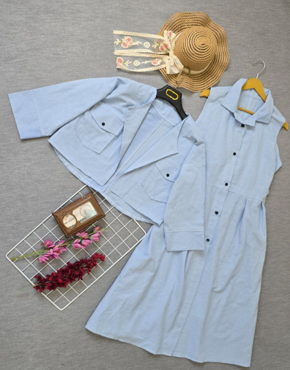 شناسه : #89513نام : 💖کت و سارافون چیچک💖جنس : 💝لنین💝رنگ بندی :  آبی آسمانی سایز ها :  فری سایز تا46 💞قد سارافون 120💞قد کت جلو 45 پشت 52💞قد آستین 48💞دور سینه 108💞دکمه کاربردی💞جیب کاربردی 💞پشت سارافون کش🔹ارسال فوری🔹