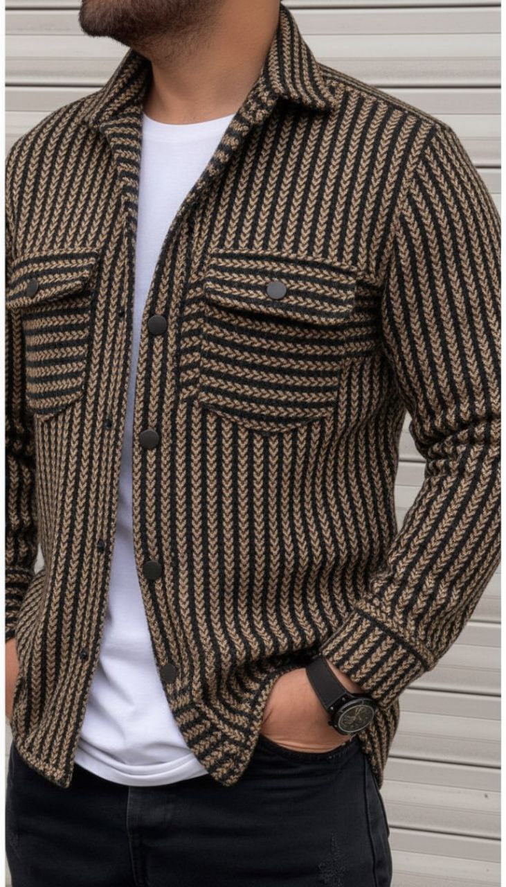 شناسه : #100628👚نام : پیراهن مردانه امید💖🧵جنس : پیچازی💖🧶رنگ بندی :  نسکافه ای💖👭سایز ها :  فری سایز تا 48💖 مشخصات پیراهن مردانه👇👇⚡️قد کارحدودا73⚡️قد آستین60⚡️دورسینه115⚡️دکمه ها کاربردی و مشکی چهار سوراخ⚡️جیب کاربردی⚡️طرح راه راه رندوم  عمود  یا افقی 🔹