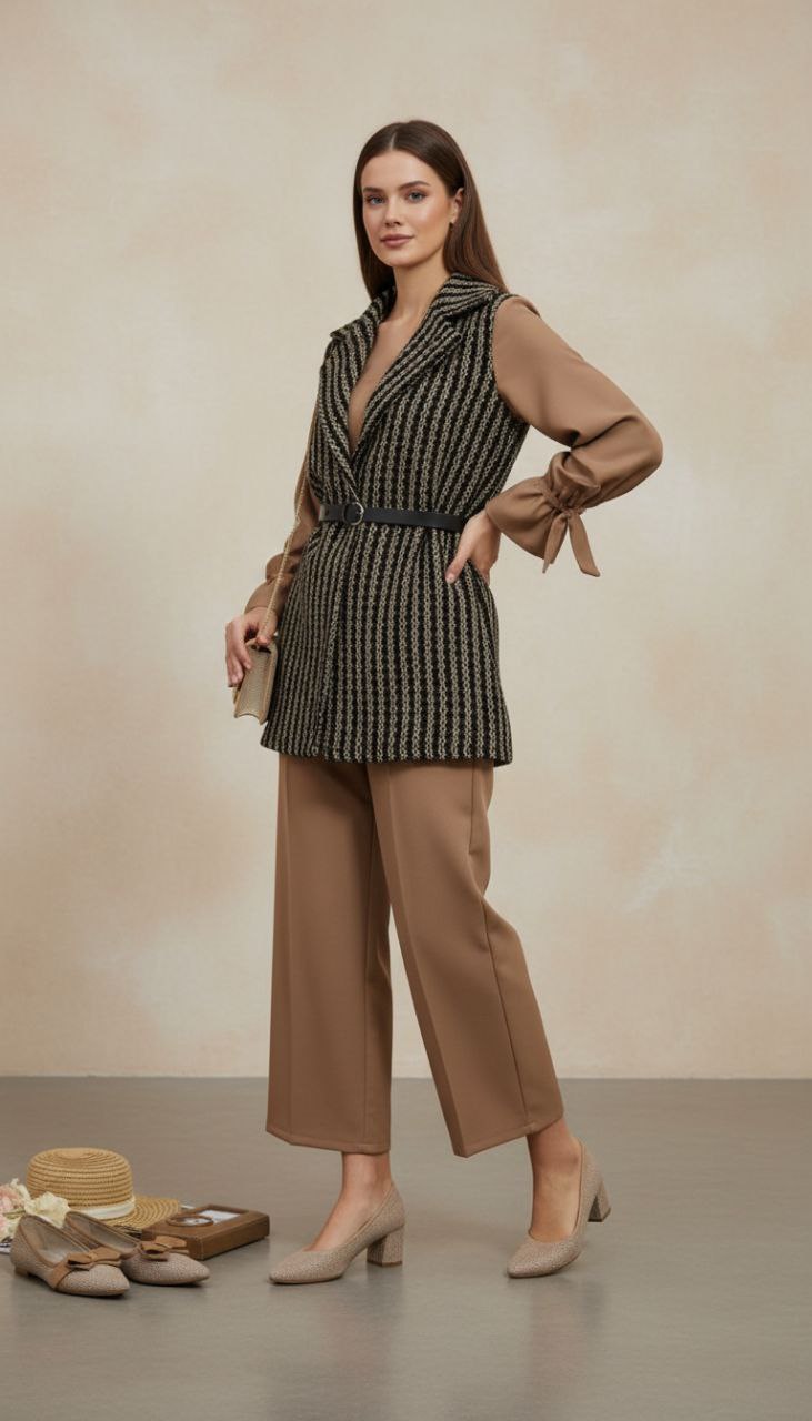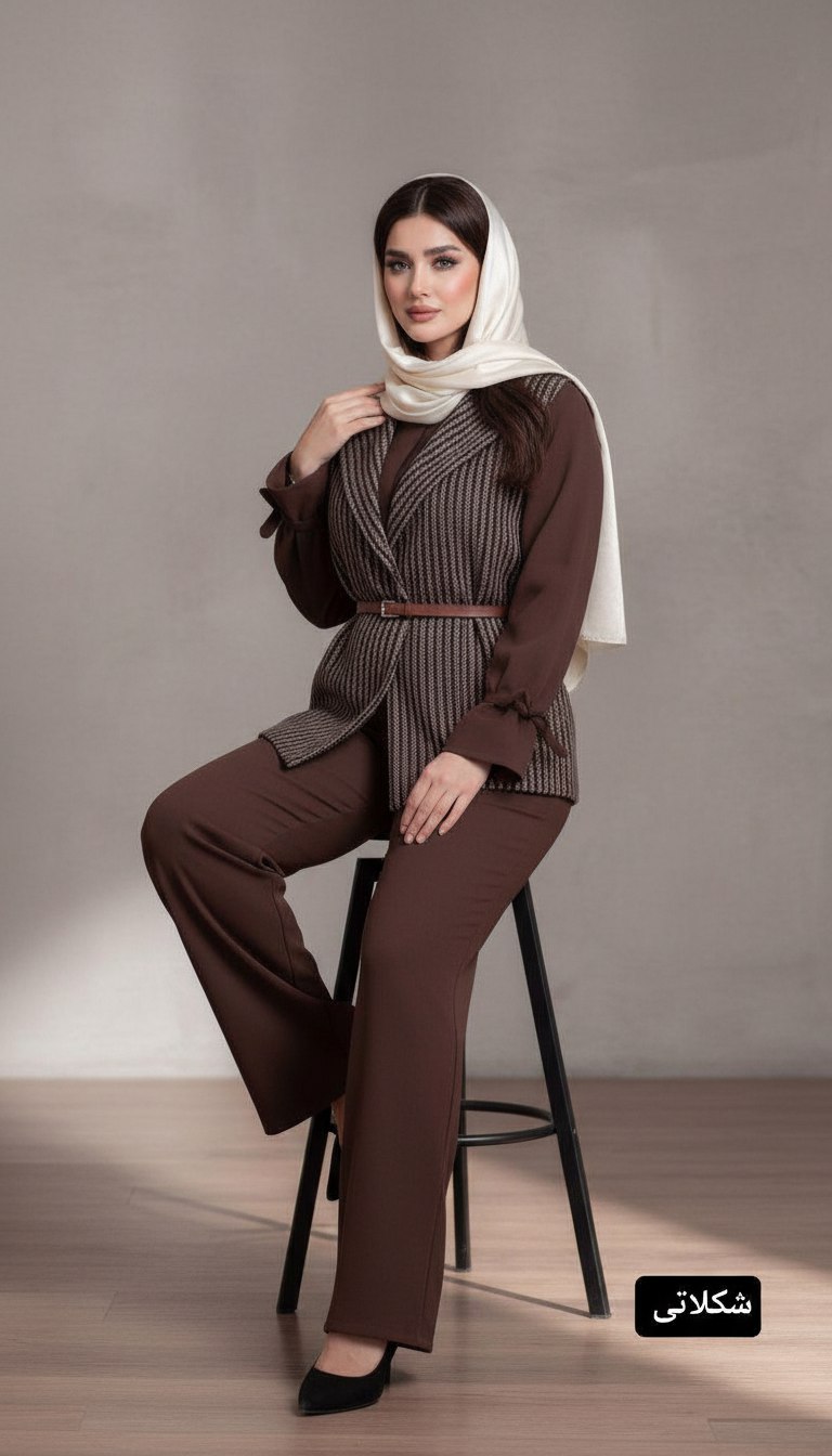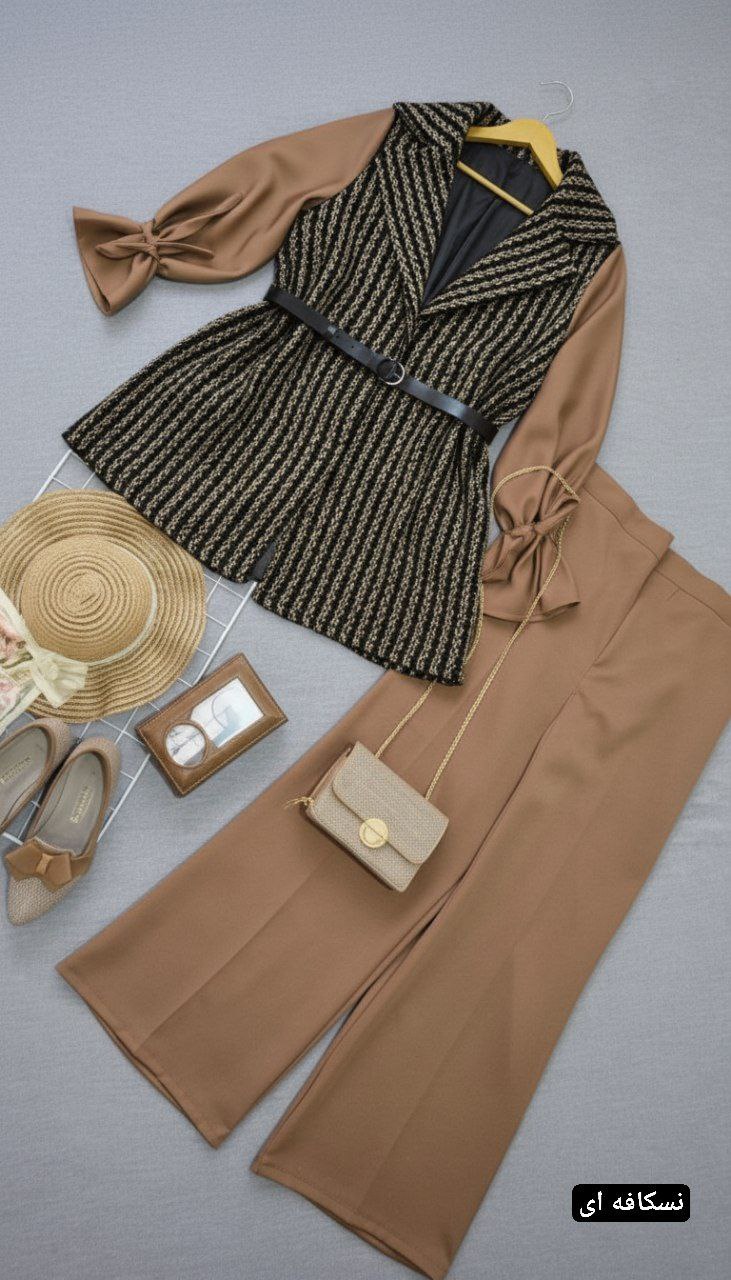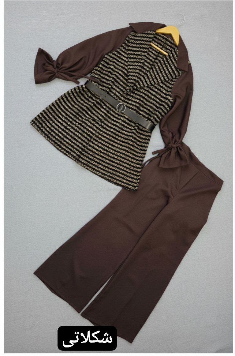 شناسه : #100611👚نام : ست مهتاب💖🧶جنس : پیچازی و آستین و شلوار مازراتی💖🧵رنگ بندی : شکلاتی, نسکافه ای💖👭سایز ها : فری سایز تا46💖💖⚡️قد مانتو 75⚡️قد آستین 58⚡️دور سینه 108⚡️کمربند چرمی مشکی⚡️قد شلوار 103⚡️ آستین به وست وصله