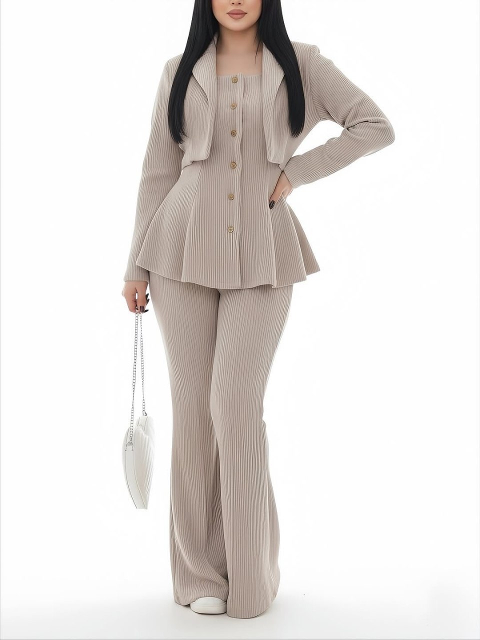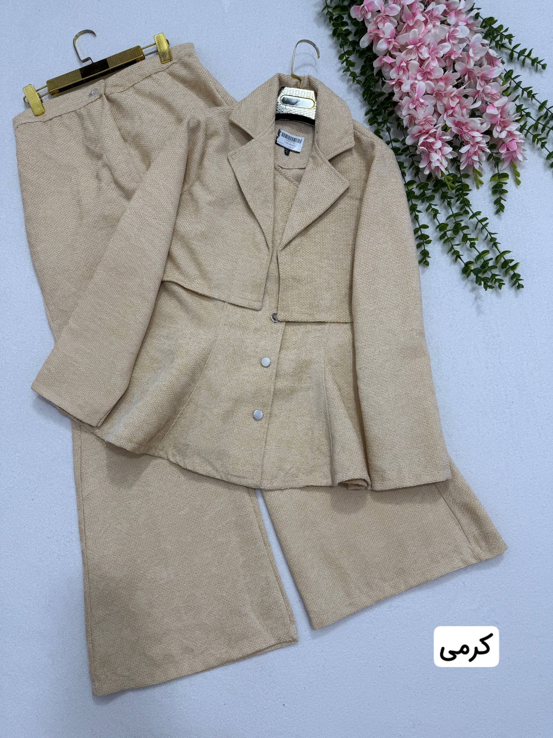ست سه تیکه کت و شلوار و سارافون زنانه کبریتی عیدانه ، ست کراپ کت و شلوار و سارافون کوتاه زنانه درجه یک و شیک و عیدانه و ترند