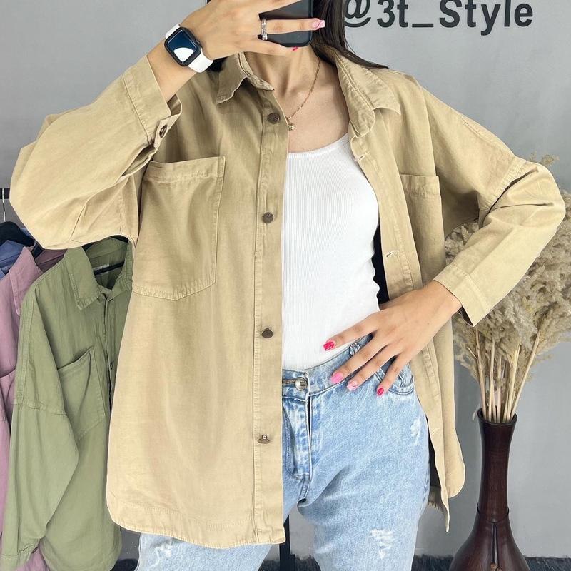 شومیز دو جیب زنانه لنین ، شومیز مانتویی دو جیب لنین خوش پوش زنانه