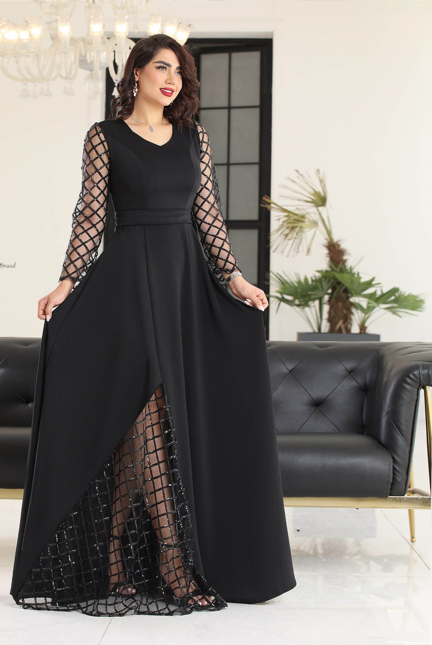 لباس مجلسی زنانه کرپ غواصی و خرجکار پولکی ترک درجه یک مشکی ، لبلس مجلسی جدید و جذاب مخصوص بانوان خاص پسند ، ترک درجه یک اصلی