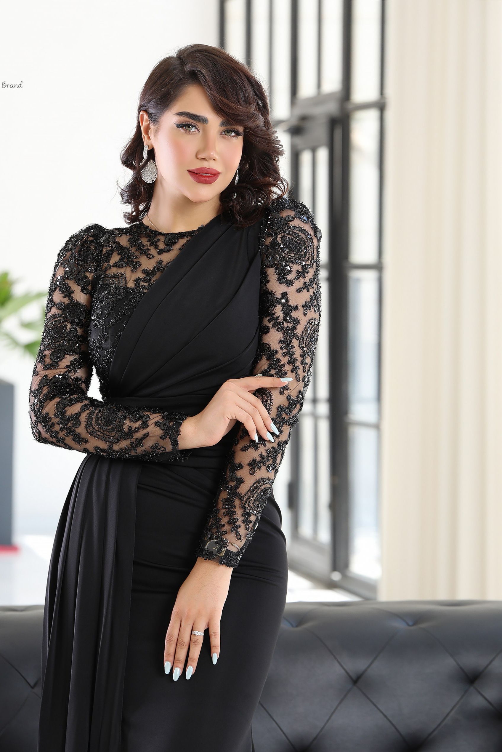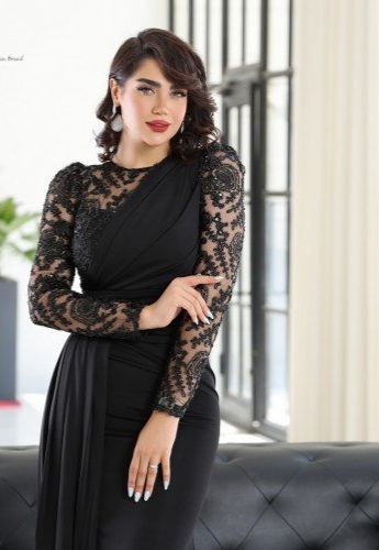 لباس مجلسی زنانه مشکی بالاتنه خاص و جذاب و شیک کرپ مازراتی و خرجکار گل برجسته ترک ، لباس مجلسی مشکی زنانه و درجه یک ترند و جدید