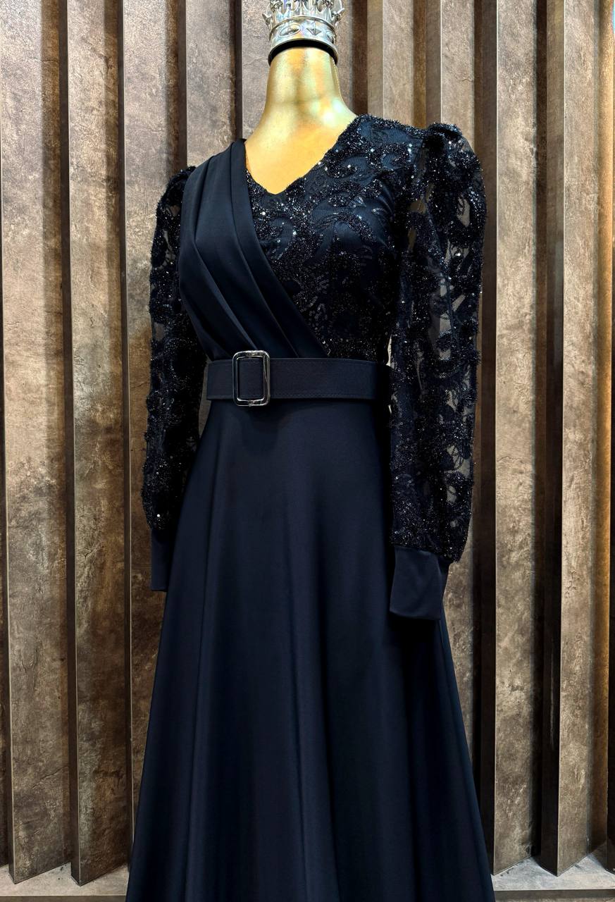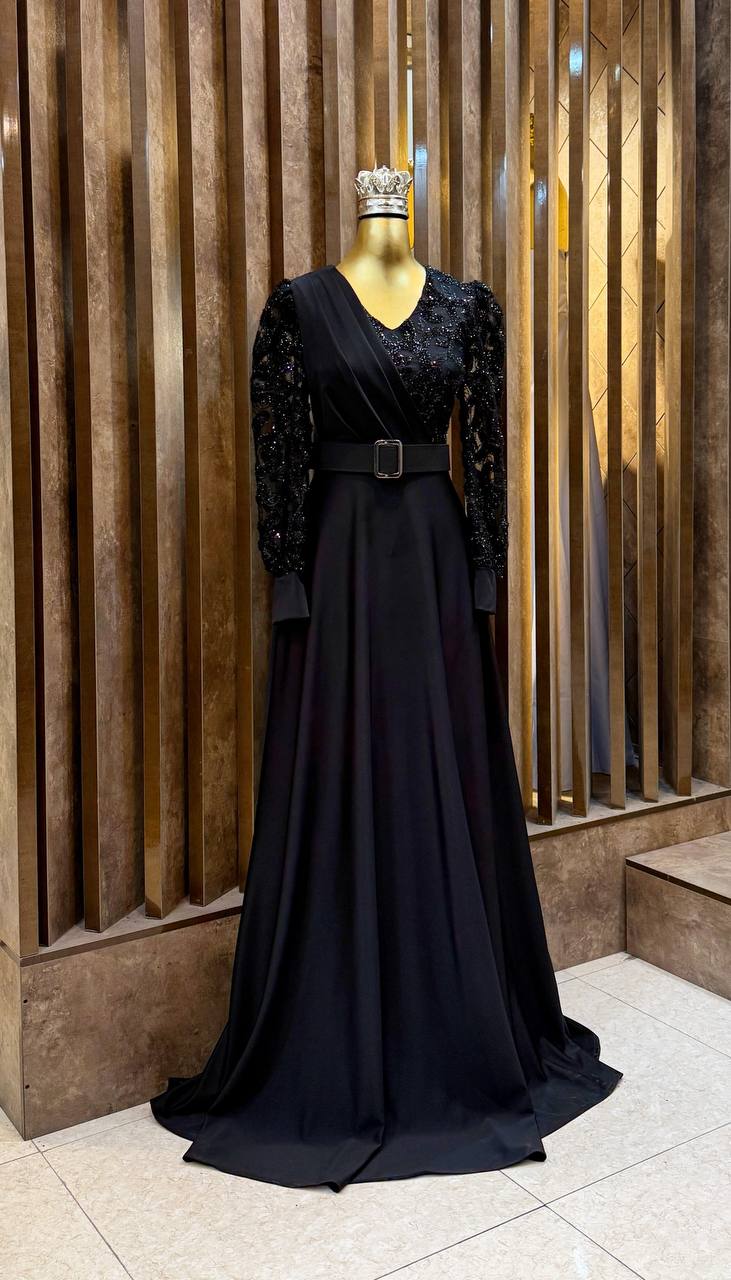 لباس مجلسی زنانه مشکی کرپ غواصی و خرجکار پولک ترک درجه یک وارداتی ، لباس مجلسی ترند و جدید زنانه مشکی پولک بالا تنه جذاب