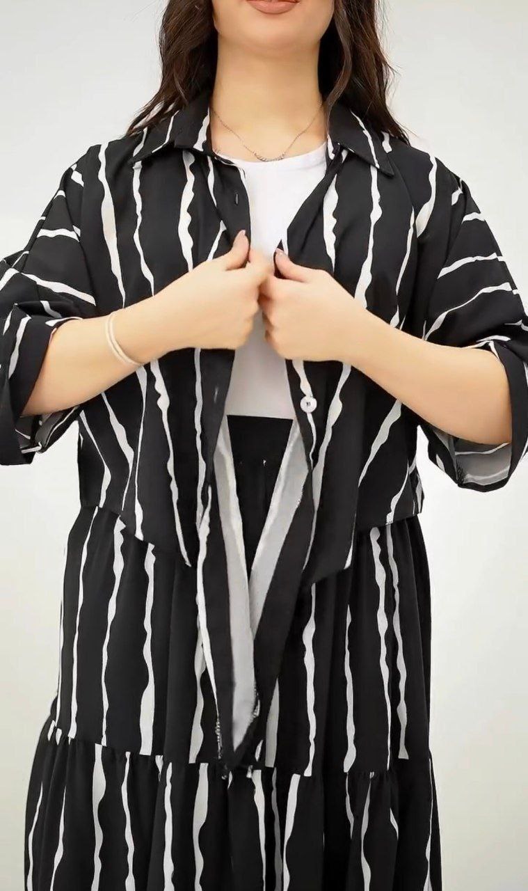 شناسه : #93757👚نام : ست گره ای زبرا.اریا💖🧶جنس : بوگاتی 💖🧵رنگ بندی :  مشکی💖👭سایز ها :  فری سایز تا46💖💰💖❤️قد شومیز حدودا55❤️قدآستین از یقه48❤️دوربازو و دورسینه کیمونو میباشد ❤️دوربازو ۹۰ دورسینه۱۴۰❤️قد دامن93❤️کمر کش