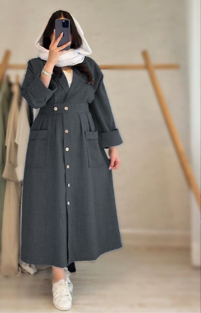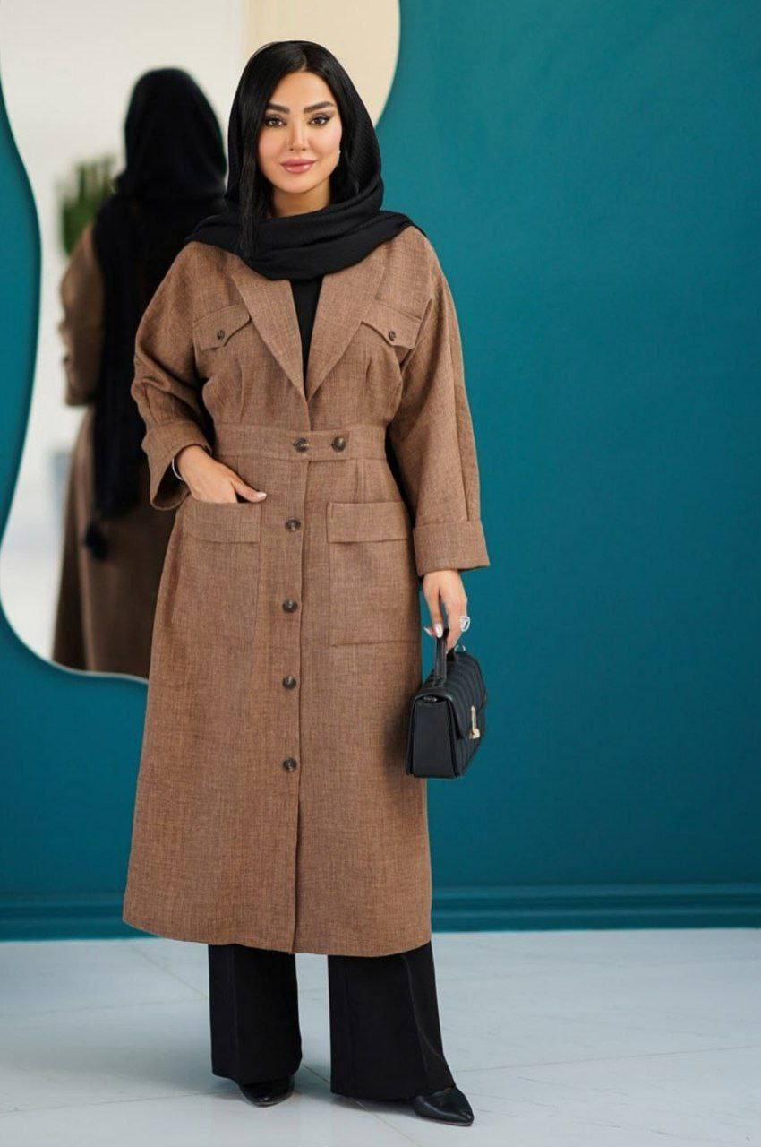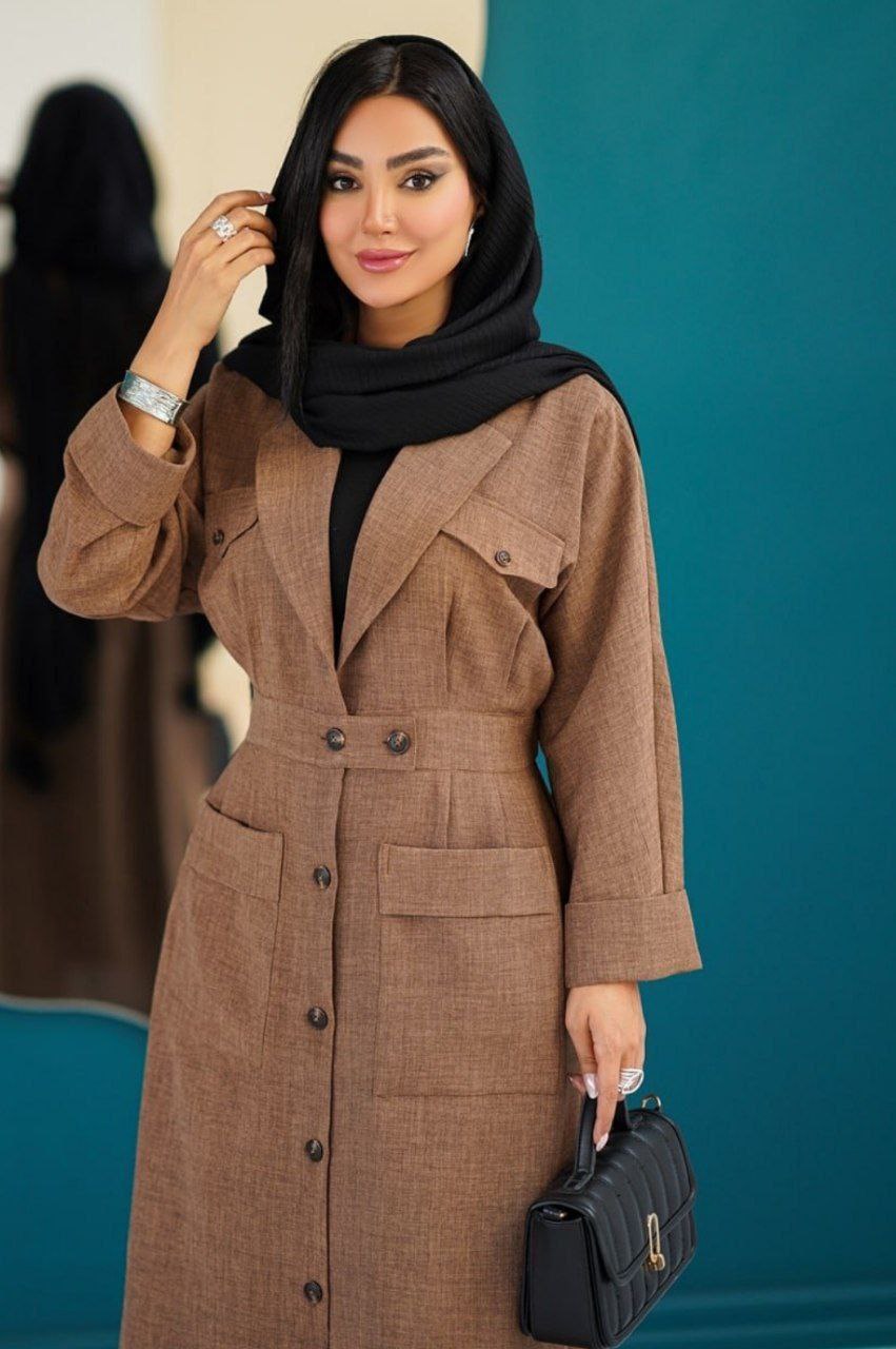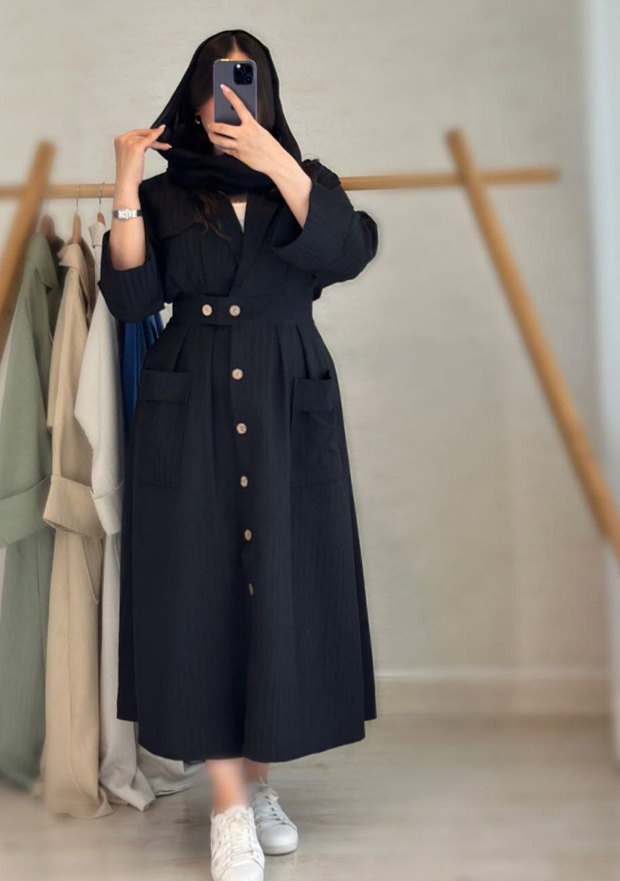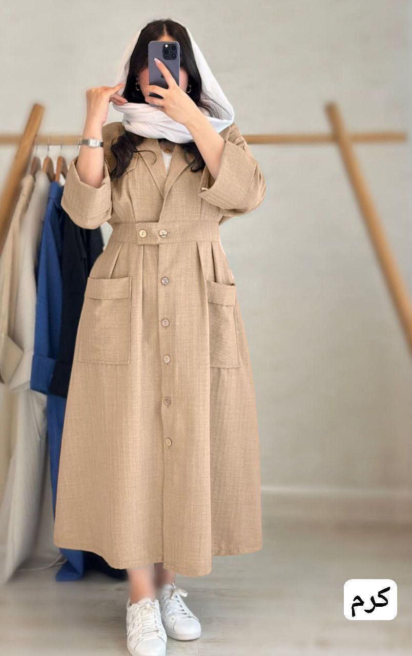مانتو بلند شانتون کمر کش ، مانتو بلند زنانه و دخترانه شیک و جدید ، مانتو بلند دانشجویی