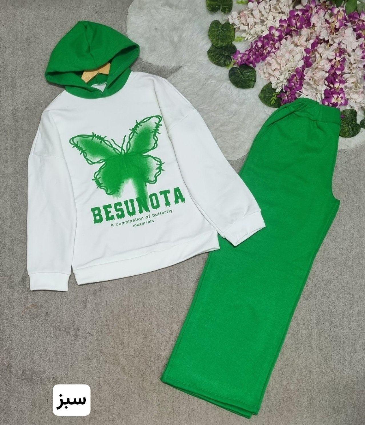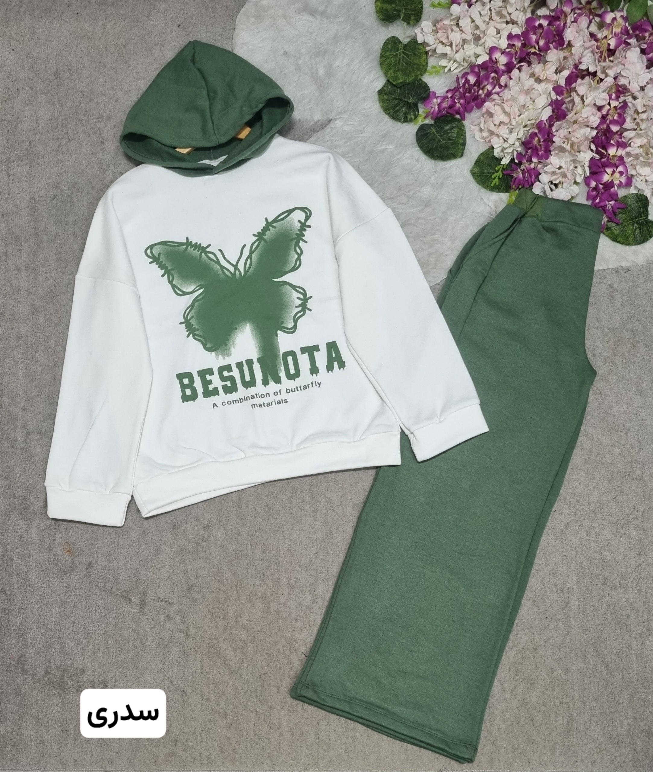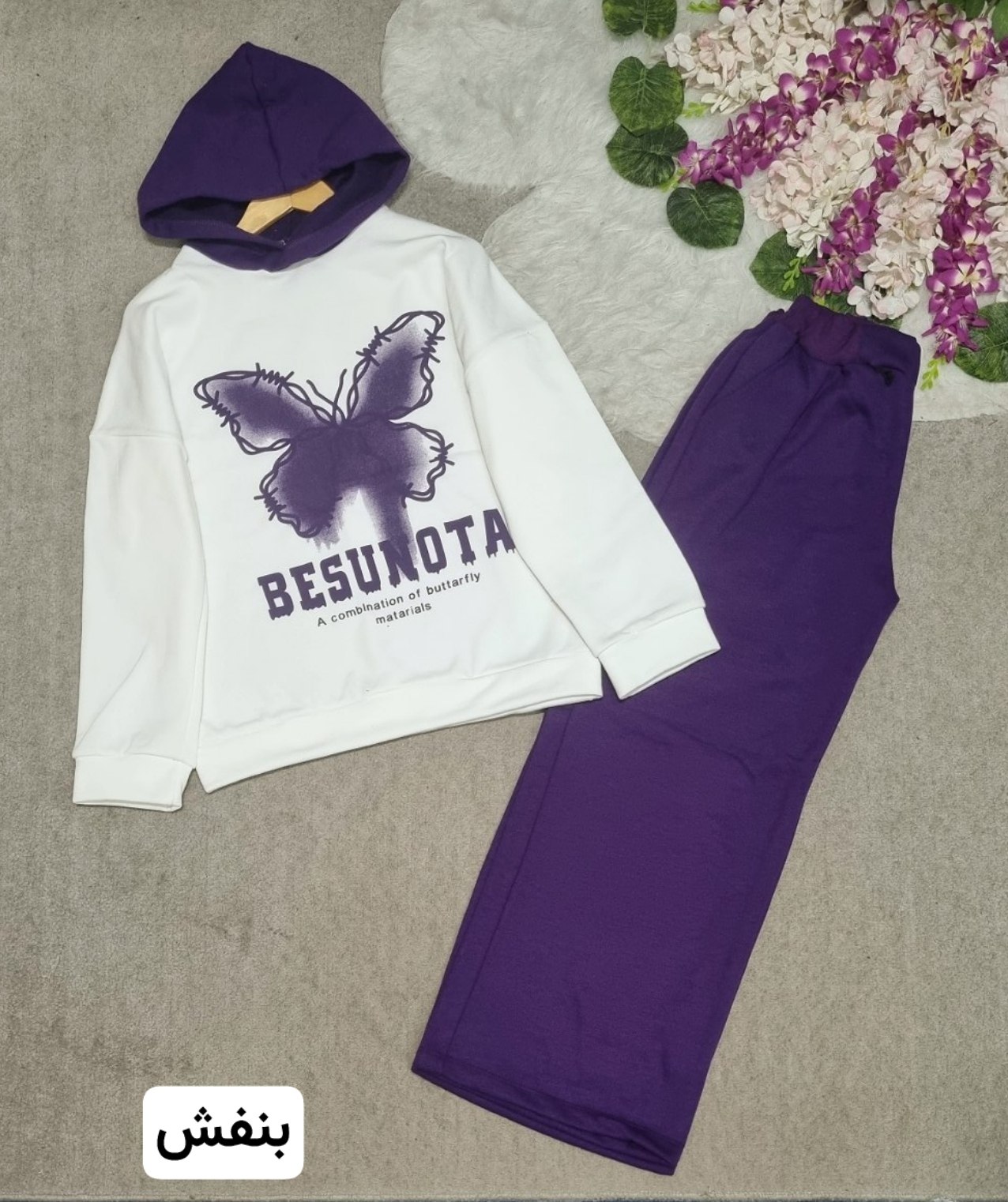 ست هودی شلوار زنانه و دخترانه پروانه ، ست دورس و شلوار دخترانه و زنانه شیک و جدید و گرم