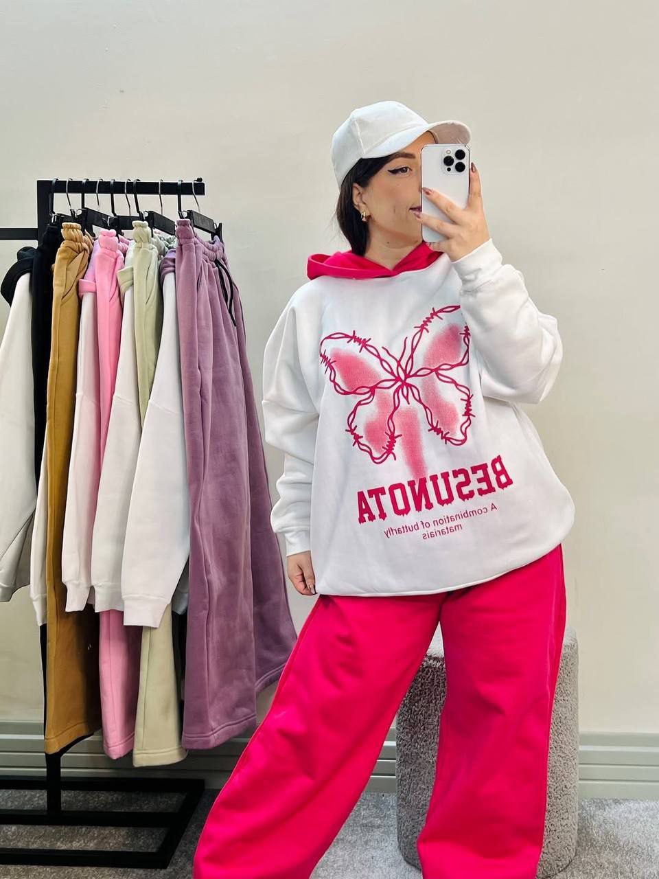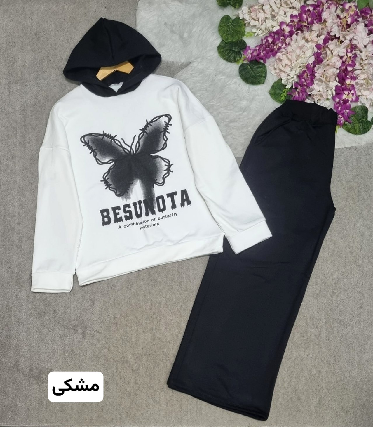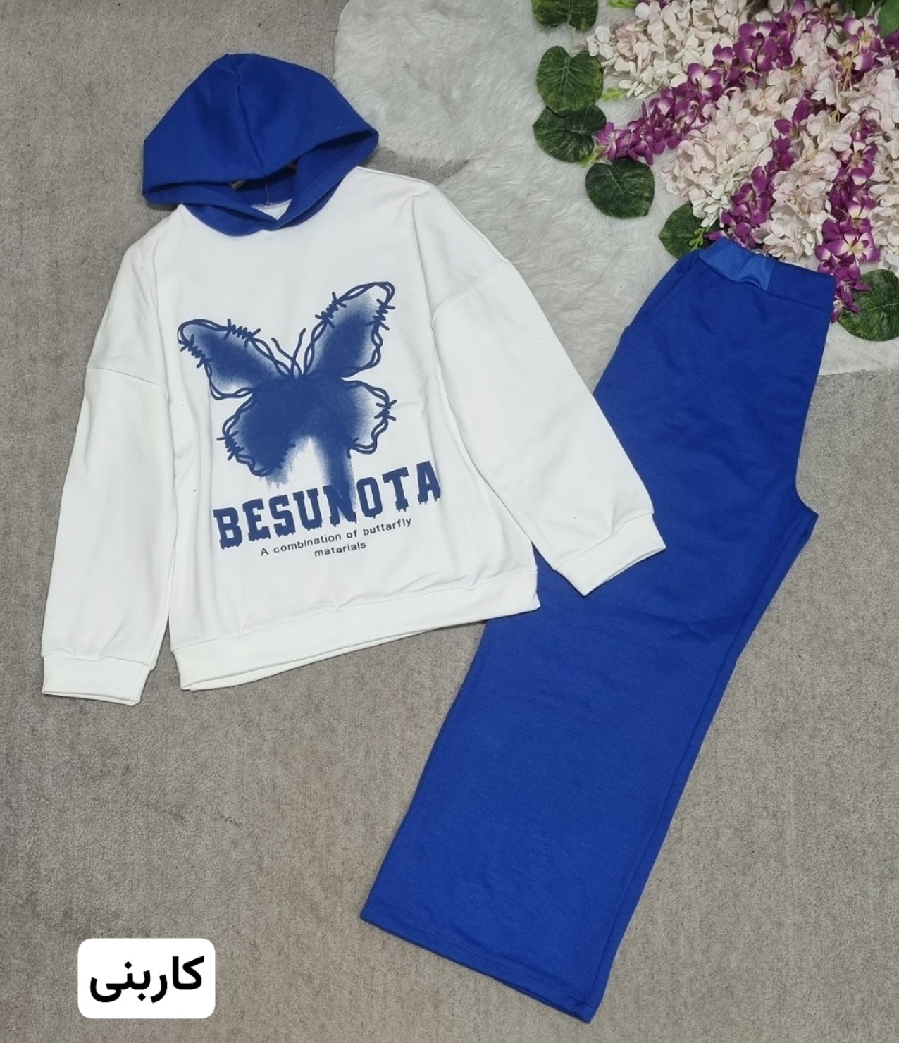 ست هودی شلوار زنانه و دخترانه پروانه ، ست دورس و شلوار دخترانه و زنانه شیک و جدید و گرم