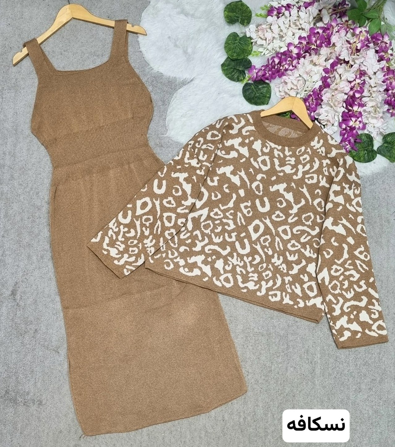 ست بافت ملیکا ، ست کت و سارافون بافت پلنگی و زیبا ، ست بافت زنانه و دخترانه جدید